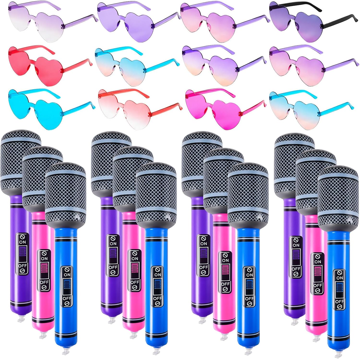 | Included Components | 12 x Heart Sunglasses, 12 x Inflatable Microphones |