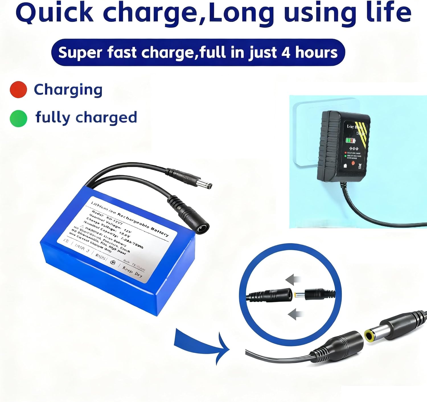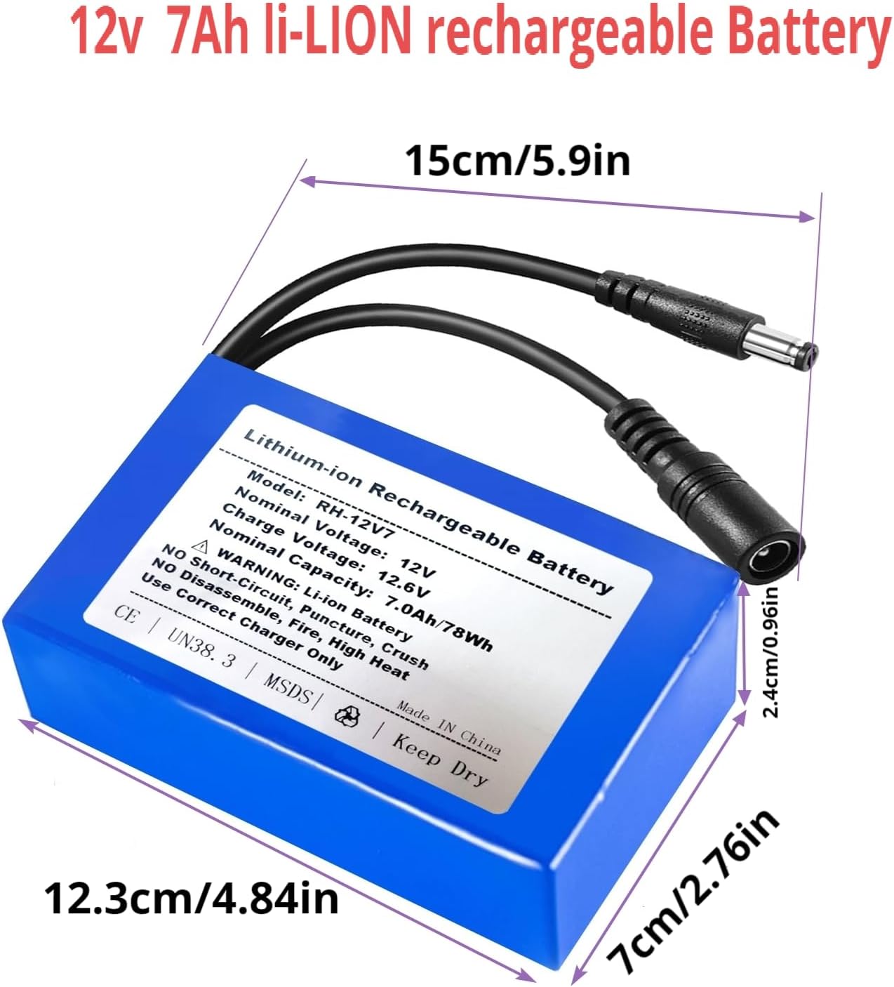 Experience longer operation for your 12V devices with this dependable 7000mAh rechargeable battery pack. Designed for endurance, it powers devices like security cameras, vibrant LED lighting, children's robot toys, hobbyist RC cars, solar applications, and many other electronics requiring sustained 12V power. The integrated safety circuit ensures protection during charging and use. Built to last for over 1000 cycles, this battery pack provides excellent long-term value and convenience, eliminating the hassle of constant battery changes. The included charger makes power management simple.