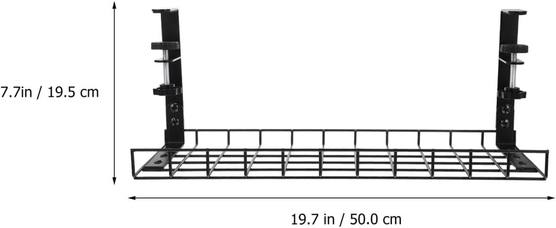 Package List 1 x Cable Management Tray Characteristics - Color: Black under desk cord organizer - Material: Steel under desk cable holder - Note: Adjustable, suitable for tables with thickness of 1-5cm desk wire management rack - Size: 50.00X19.50X19.00cm/19.65X7.66X7.47in cable management holder - This under desk cable tray provides stability and load-bearing capacity under desk cable management holder. - No need to drill holes in your desk, it is designed to clamp directly to desk frames desk wire cable tray. - Hide the cables and outlets in the mesh storage rack, will not take up much more space cable management under desk. - Provide a storage area for managing cables, power supplies, and outlet strips under desk wire rack. - This under desk cable management rack is very simple to install, not easy to fall under desk cable management.Goods Informationunder desk cable organizer It makes your work area easier to keep tidy.under desk cable management tray Made of and durable material, this cable storage bracket is sturdy and practical for use.desk wire cable tray Collect cables and power cords together.under desk cord rack design, with load-bearing capacity, can hold more wires