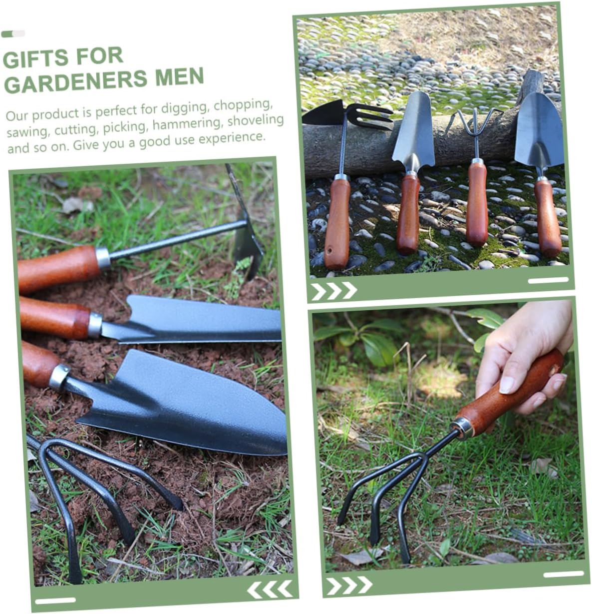 Package List 1 x Shovel 1 x Rake 1 x Shovel Rake 1 x Scoop Characteristics -Size(rake):24.00X9.00X4.00cm/9.43X3.54X1.57in hand trowel for gardening -Size(scoop):32.00X9.00X2.00cm/12.58X3.54X0.79in garden hand tools -Color:Assorted Color garden supplies -Size(shovel):30.50X6.50X2.00cm/11.99X2.55X0.79in garden trowels hand tool -Material:Steel gardening supplies -Size(rake shovel):25.00X15.50X6.00cm/9.82X6.09X2.36in yard tool -Suitable for home gardening or other outdoor activities, such as camping, hiking, climbing, tourism, travel, etc gardening hand tools. -Our product is perfect for digging, chopping, sawing, cutting, , hammering, shoveling and so on. Give you a good use experience hand digging garden tools. -The gardening tool set is made of steel materials for long time use without deforming, it is practical garden trowel for planting. -Easily fit this entrenching gardening tool set in your backpack or the trunk of your vehicle garden trowel. -It can be easily carried and it is lightweight design, also a perfect tool for gardening lover garden tool.Goods Descriptiongarden trowels hand tool The garden tool set is for easy digging into tough , breaking hardened clods, planting, transplanting, removing stubborn , mixing and compost or scooping.mini gardening tool It is a great companion to bring your garden to life and also can be a great present friend who loves gardening