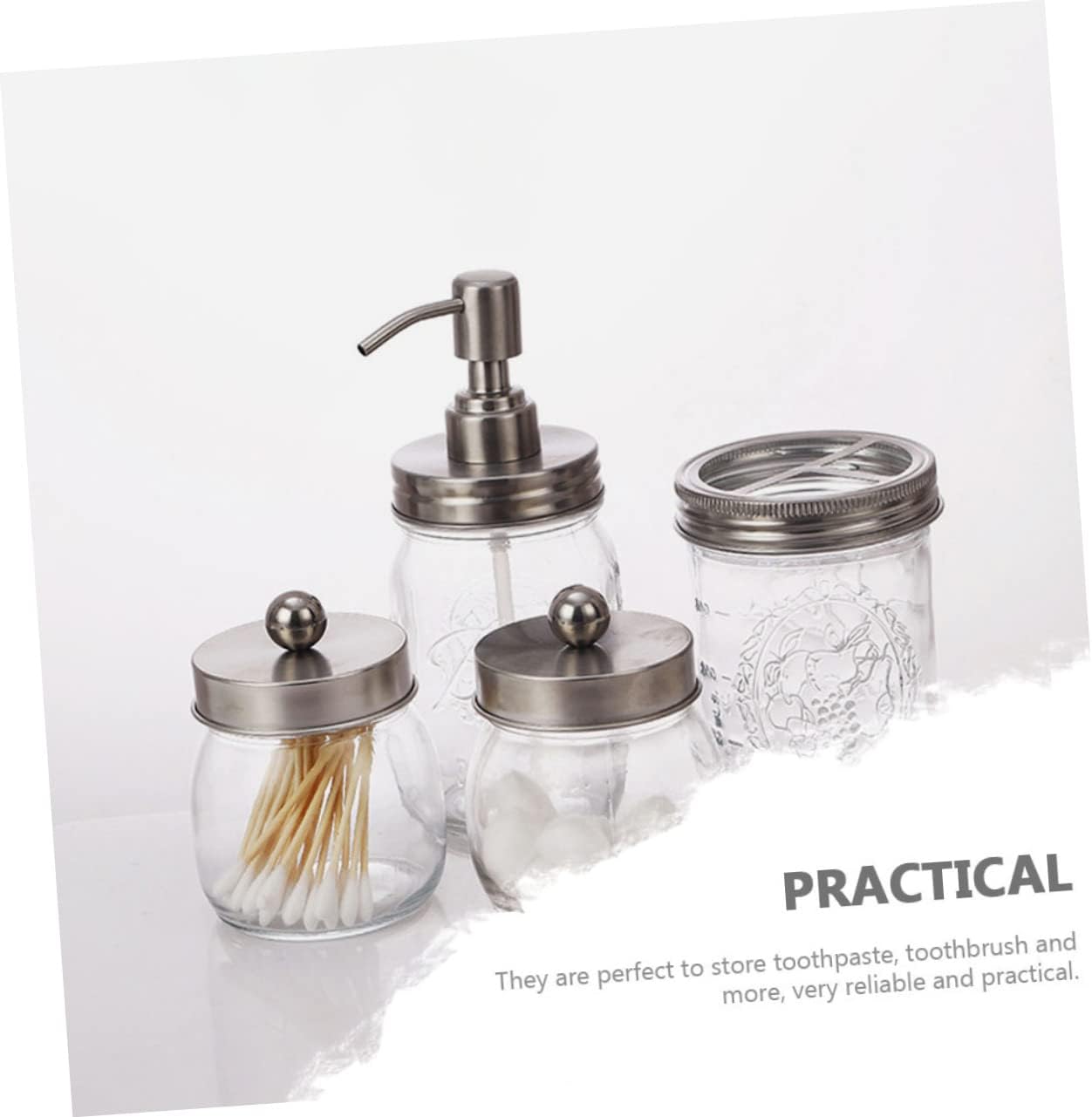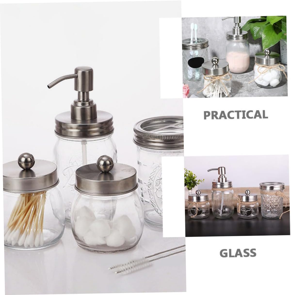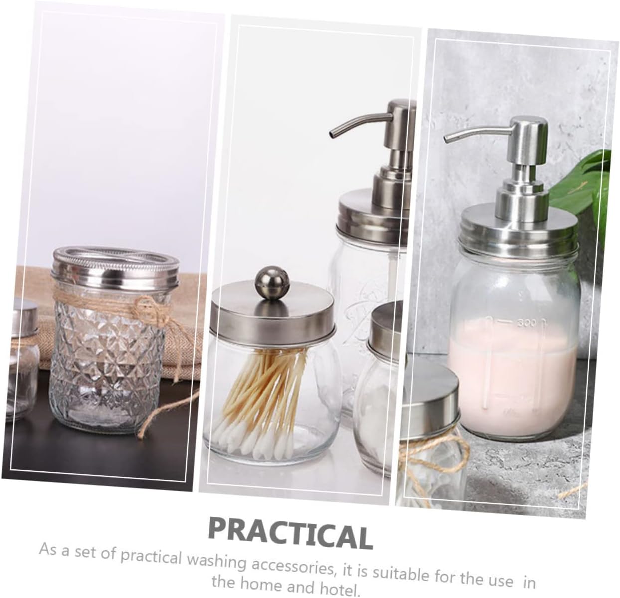 Package List 2 x jars 1 x bottle 1 x cup Characteristics -Material: Glass Gargle Cup -Fine workmanship ensures the practicality and durability of our product, which is reliable and Home Use Gargle Cup. -The accessories are made of good glass material, which has the Glass Bathroom Accessories Kit. -All items feature the smooth surface, making them comfortable to touch and easy to clean foam. -Finely processed, smooth surface, texture, not easy to deform and break, fashionable and decorative -Keep your bathroom neat and tidy, a necessary supplies in your bathroom, which is also a great to your friends dishwasher.Goods Descriptionhand dispenser Don't hesitate.holder dispenser It can help you keep the bathroom clean and tidy.Bathroom Washing Accessories This bathroom set includes everything you need to decorate and tidy up your countertops.Bathroom Supply Easy to clean and , stylish looking, comfortable and .Bathroom Swab Holder Help protect your cleaning surfaces and keep your bathroom neat and organized