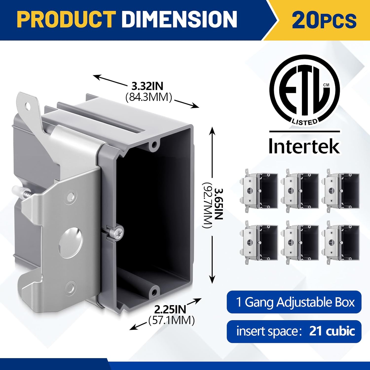 | Included Components | 20 x Adjustable Electrical Box Outlet |