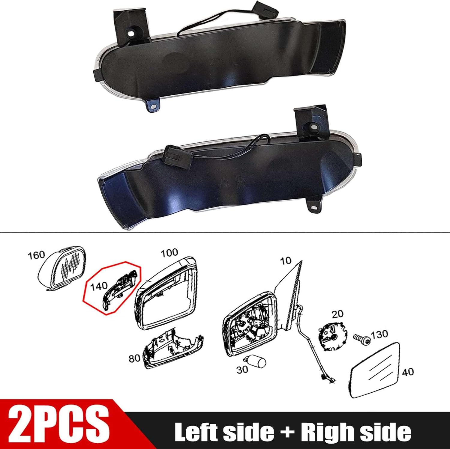 Features: 【Ⅰ】, Lens Clear,Amber Blinker Light working as original 【Ⅱ】, Lens black,Sequential Amber Light working upgrade 【Ⅲ】, Lens white,Sequential Amber Light working upgrade 【Ⅳ】, Lens black,Dynamic blue+Sequential Amber Light working Switchback upgrade 【Ⅴ】, Lens black,Dynamic white+Sequential Amber Light working Switchback upgrade FITMENT: Edition1, FIT:Mercedes-Benz SL Class W230 2001-2003 Edition2, FIT:Mercedes-Benz SL Class W230 2004-2008 Material: ABS+PC+LED Wattage: 5W Voltage: 12V Lens Housing color: Clear/white/Black The three light operating modes to choose: 1, Amber Blinker(as original) 2, Sequential Amber 3, Dynamic Welcome-Sequential Amber-Dynamic Goodbye Installation Instruction: #1 Blinker Light: Plug and Play #2 Welcome/Goodbye Light: three ways to Connect Switchback Function cable,each with a different outcome: (1)..Puddle Light Connection: Link to the puddle/welcoming light's positive wire. The dynamic blue/white lights activate for 3-10 seconds when unlocking or locking the vehicle. (2)..Mirror Folding Connection: Attach to the mirror folding feature's positive wire. The lights flash for 3-10 seconds upon car unlock. (3)..Door Panel Connection: Wire to the door panel's positive terminal. The blue/white lights illuminate for 3-10 seconds during unlock/lock or after turn signals are off. Tips: Dynamic Light To disable, cut the wire by taped, reverting to standard Amber turn signals. Package Included: 1 Pair (left+right) of Turn Signal Lights