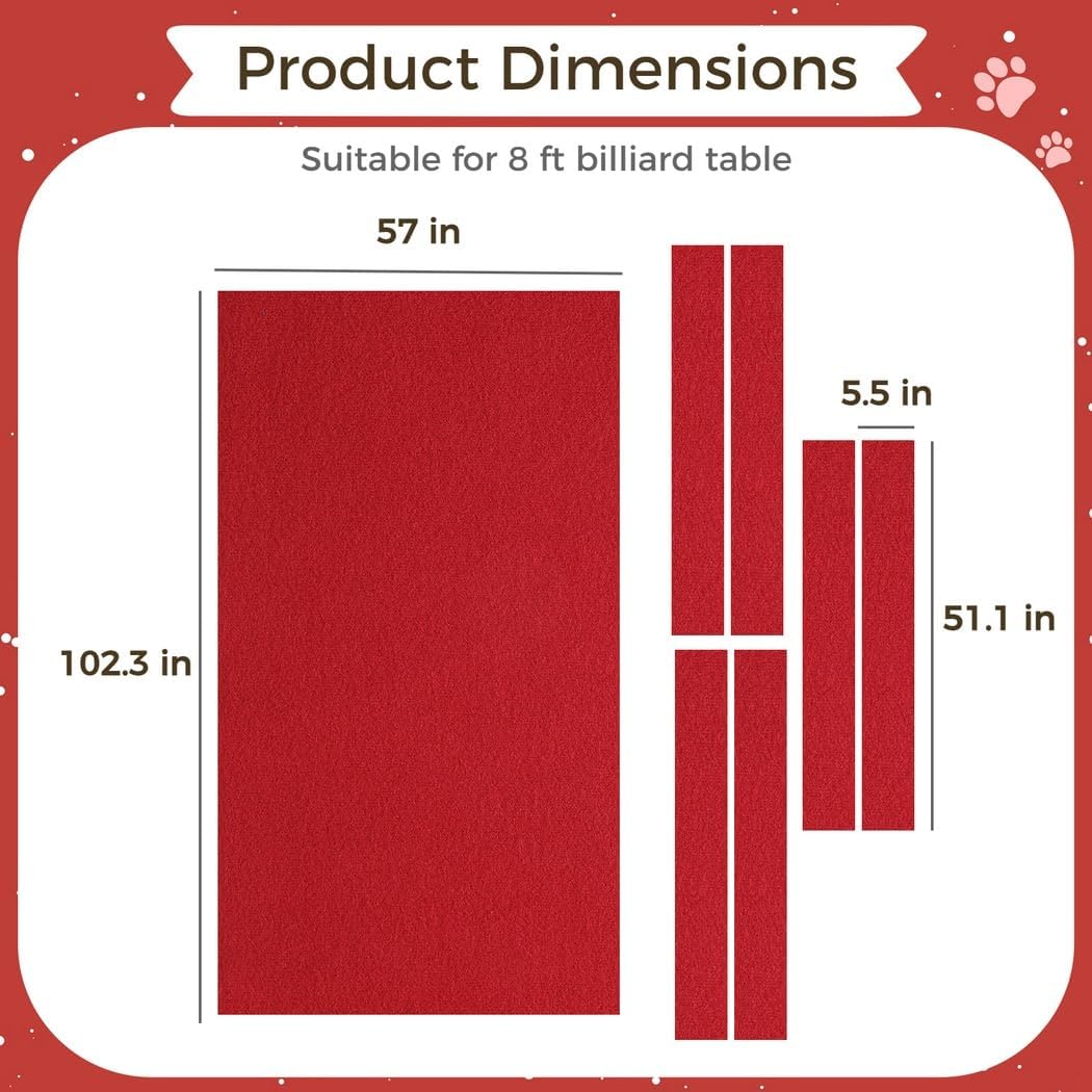 Color: dark red Material: felt fabric Size: 102.3*57" Package Includes: 1 x b illiard t able c loth , 6 x side cloth Note: - Please refer to the measurement. Tiny measuring error is allowable in normal range. - There might be a little color difference due to the monitor, camera or other factors, please refer to the physical item.
