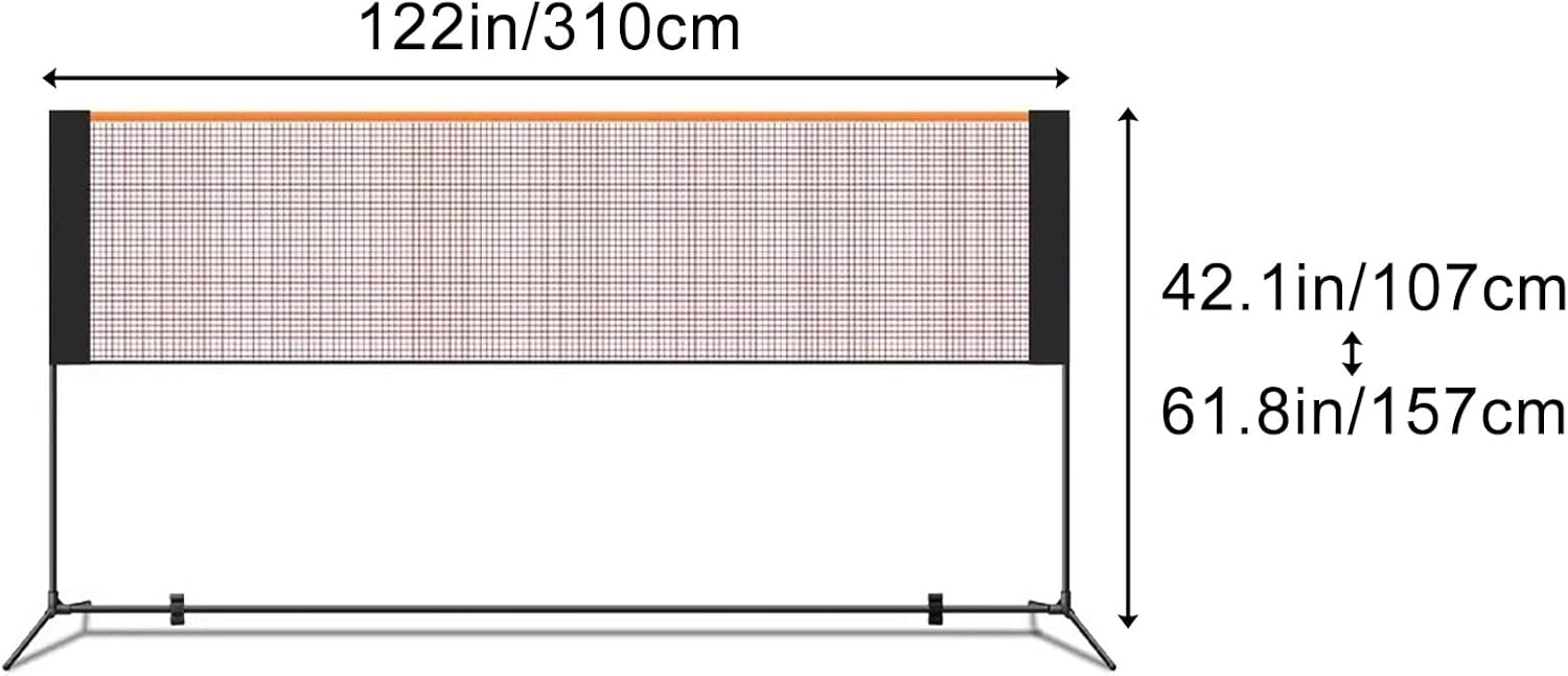 This multi-sport portable net is not only suitable for badminton but also suitable for pickleball, tennis, volleyball, and soccer tennisEnjoy endless fun in your backyard, at the beach, park, or indoor gymThe adjustable height fits all ages and sports needs, allowing easy transition between games【Specifications】Net length: 122in/310cm, 165.3in/420cmHeight Adjustable: 42.1-61.8in/107-157cmSupport Material: Metal steel pipeNet Material: Nylon netPackage Includes: 1x Net, 1x Bracket Set, 1x Carry Bag
