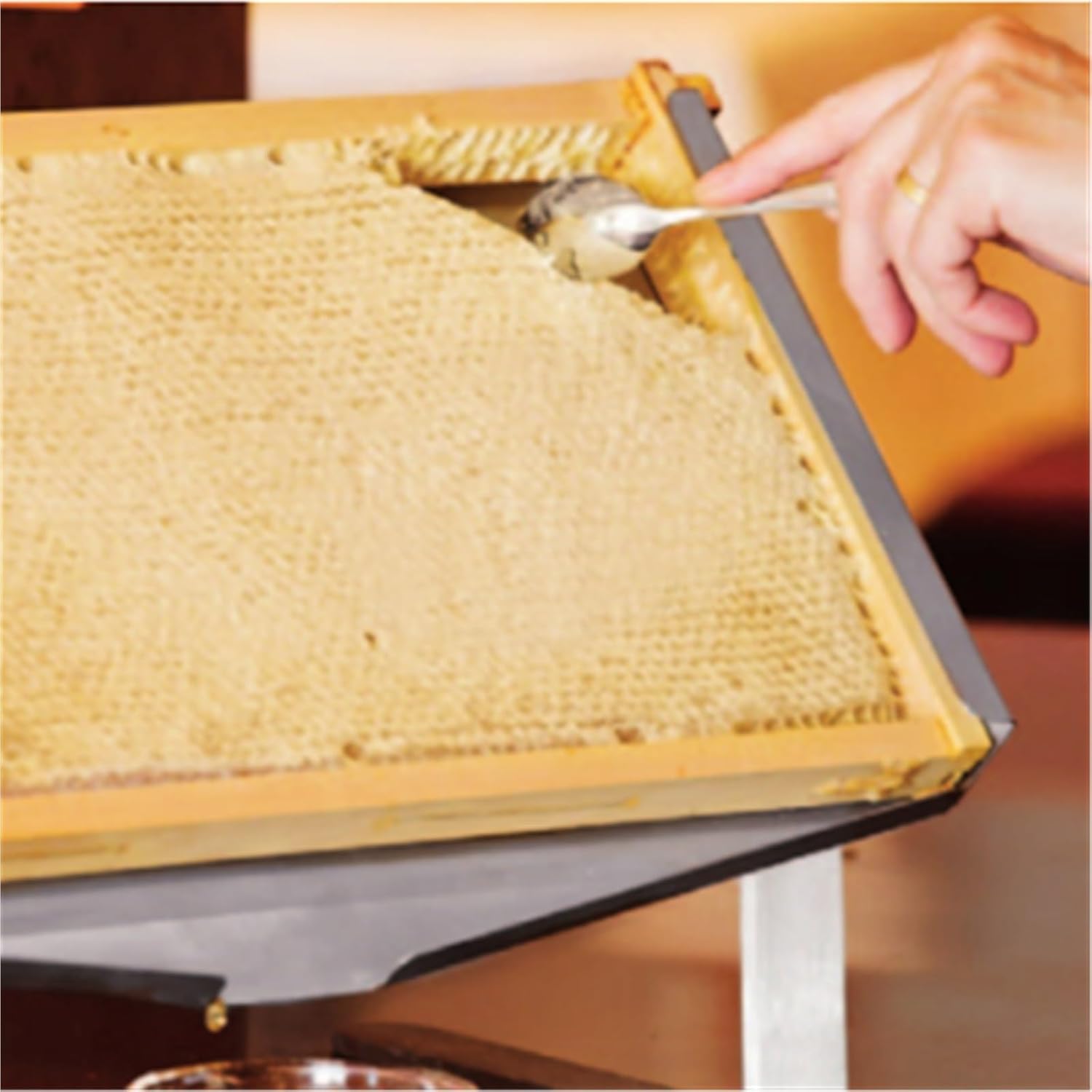 Product Description:Stainless Steel Material: This honeycomb frame support is made of stainless steel, making it wear-resistant and sturdy, ensuring long-term use.Multifunctional design: The beehive frame support tray can be used as a honeycomb opening tray and drip rack. It combines multiple functions, improving work efficiency.Easy to clean: The smooth surface of the stainless steel material makes it difficult for impurities to adhere, ensuring quick cleaning.Honey collection design: The opening at the bottom allows honey to flow smoothly into the container placed below (not included), minimizing honey waste and making the collection process clean and efficient. It vividly showcases the intricate structure of the honeycomb and the natural flow of honey. It also provides a stable and convenient platform for transporting honeycomb frames, simplifying the honey extraction process and improving honey collection efficiency.Suitable for bee farms, beekeeping workshops, honey shops, restaurants, farms and other places.