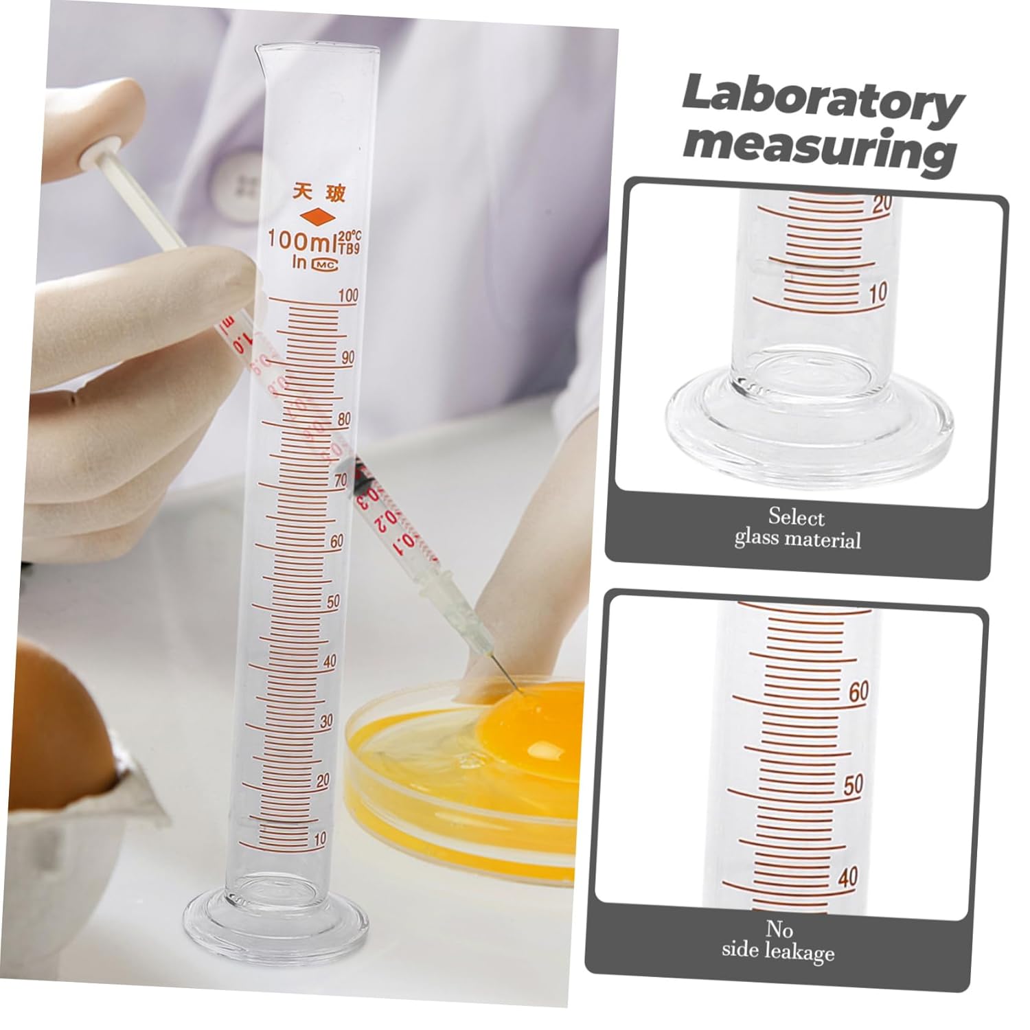 Package List 3 x glass beakers 3 x measuring cylinders 3 x conical flasks Characteristics - Material: Glass Measuring Cylinder. - Capacity of measuring cylinder: 50ml, 100ml, 250ml Glass Measuring Cylinder. - Capacity of glass beaker: 50ml, 100ml, 250ml Graduated Cylinders Set. - Size: 30.50X7.00X7.00cm/11.99X2.75X2.75in Graduated Cylinder - Capacity of conical flask: 50ml, 150ml, 250ml Experiment Conical Flask. - ColorTransparent Graduated Measuring Cup - Widely used for education, chemistry, research, or Glass Graduated Cylinder. - Select and glass material, leakage, having Laboratory Conical Flask. - With easy-to-read scale that contrast nicely for easier and accurate measuring Laboratory Measuring Device. - They well suited for experimental projects or kitchen, chemically to acids, bases and many common solvents Graduated Beaker. - High and , tool in your laboratory Laboratory Beaker.Goods DescriptionGlass Measuring Cylinder Made of glass material, , and .Experiment Conical Flask No bubbles, no burrs, smooth and rounded.Laboratory Beaker Standard capacity: clear scale, easier to identify for accurate measurement.Graduated Beaker More convenient to use for students in school laboratory when doing experiments in chemistry class