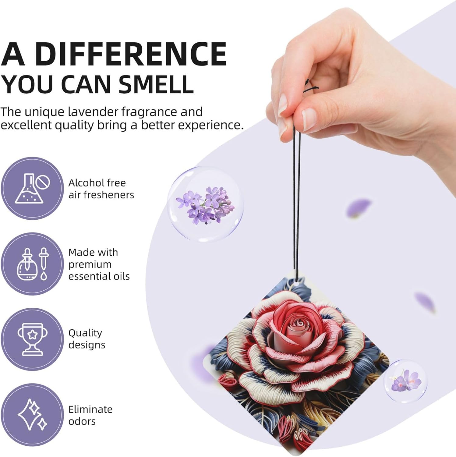 unobstructed vision: this Embroidery Style Rose rearview mirror scented fresheners doesn't obstruct your vision while driving, ensuring a safe and comfortable journey every time.easy hang: we've included a convenient rope for hanging, making it super easy to attach this christmas air freshener wherever you prefer. No fuss, no mess - just hang and enjoy the fragrance.incredible package deal: this rearview mirror pendant aromatherapy tablets package includes 6 pieces in 6 captivating designs and 1 refreshing scents (lavender). Experience a variety of delightful fragrances that will keep your surroundings smelling wonderful throughout the day.environmental protection: the car air fresheners for women smell can last for about 1-2 weeks. When the smell fades, you can add your favorite perfume. Continue to use, reusable6 pcs included: you will receive 5 individual shoe cabinet fresheners, each in its own package; enjoy consistent scents for nearly a year, or share them with your friends or families