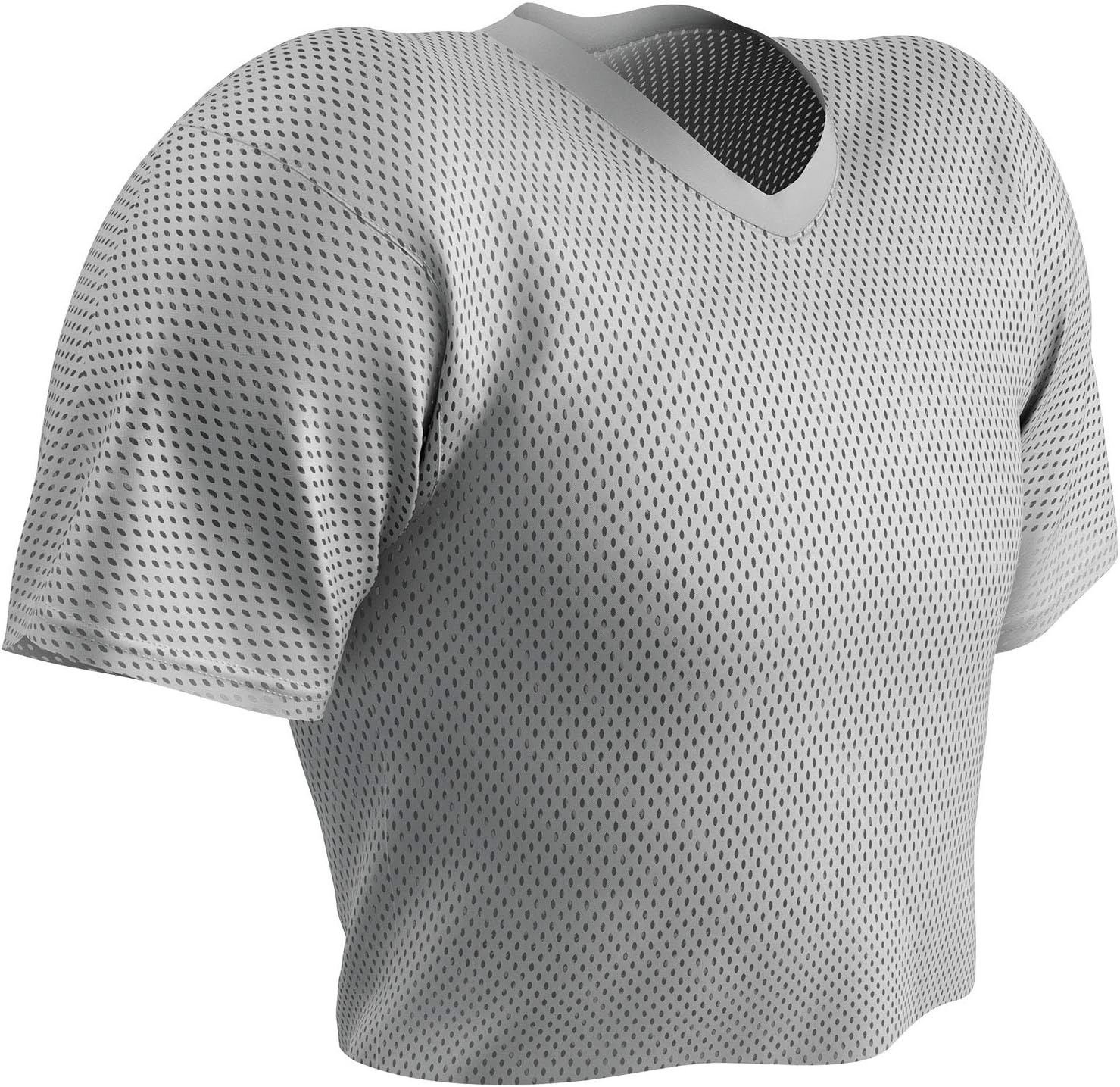 The CHAMPRO Gridiron Football Jersey is a waist-length mesh practice jersey that is ideal for football training. Made with 100% polyester porthole mesh for breathability, helping athletes keep cool. Designed for durability with a double-reinforced shoulder seam, rib-knit v-neck collar, and double-needle hemmed sleeves and bottom. Available in adult sizes Medium, X-Large, and 3X-Large; youth sizes Medium and X-Large in 14 colors.