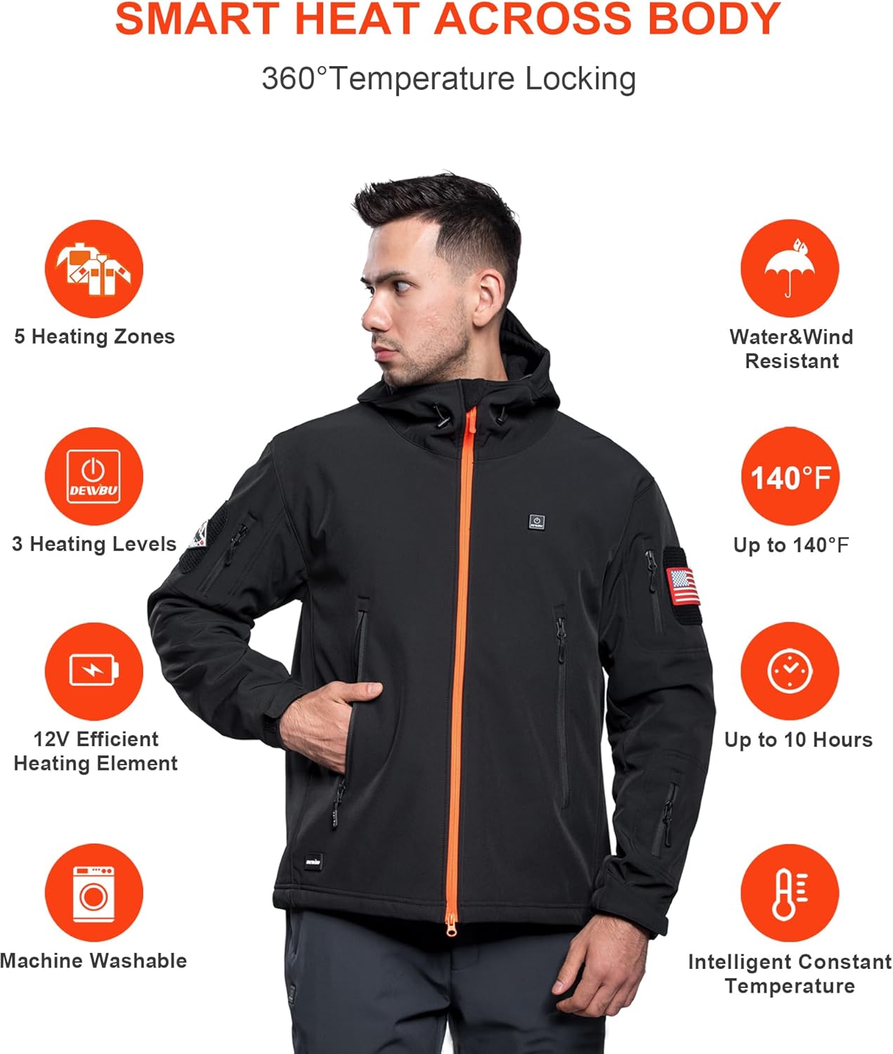 | Style | Dewbu Heated Jacket Men's Blaze Orange Zipper, M |