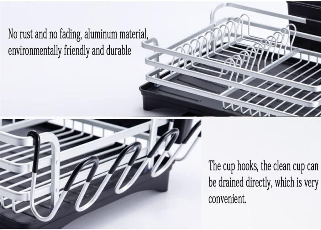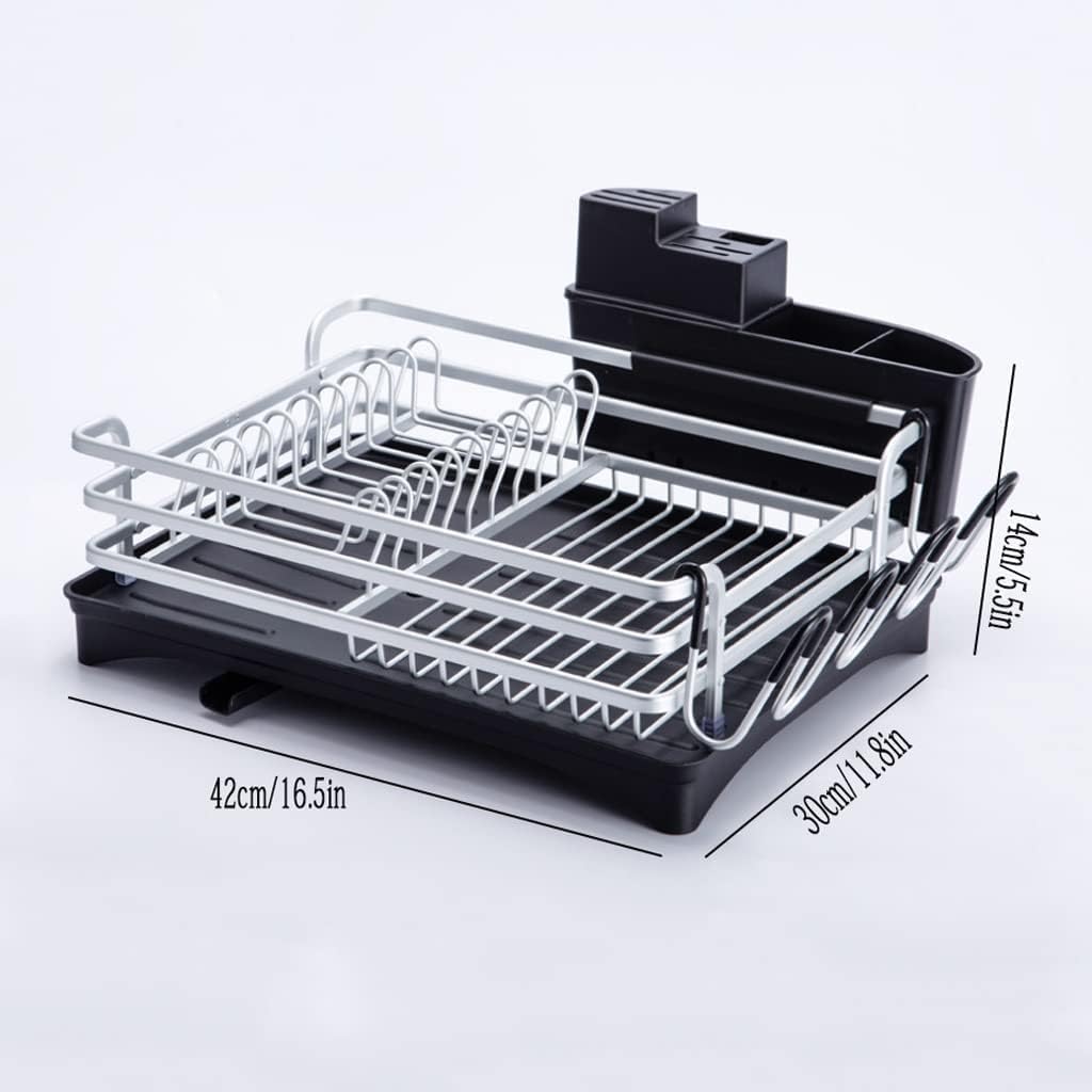Keeps Counter Tops Dry: This utensil drainer collects any water drips to keep your counter tops clean and dry.Product Name: Kitchen Storage Rack/Tableware Drain Rack/Storage RackProduct material: metal, plasticColour: BlackSize: 42*30.5*14cm/16.5*11.8*5.5inPackage Included:1X Dish rack(Dishes and other kitchenware in the picture are not included)Sleek and Modern Design: Our dish drainer set combines functionality with a sleek, modern design that complements any kitchen decor.Save Space: It takes up minimal counter space, you can do all the dishes in one sweep instead of stopping halfway to dry and make room for more.Multifunctional Rack: Besides drain board, this kitchen dish drying rack comes with a cup rack and a utensil holder, the side cutlery rack can hold various utensils, meet your needs for storing kitchenware.