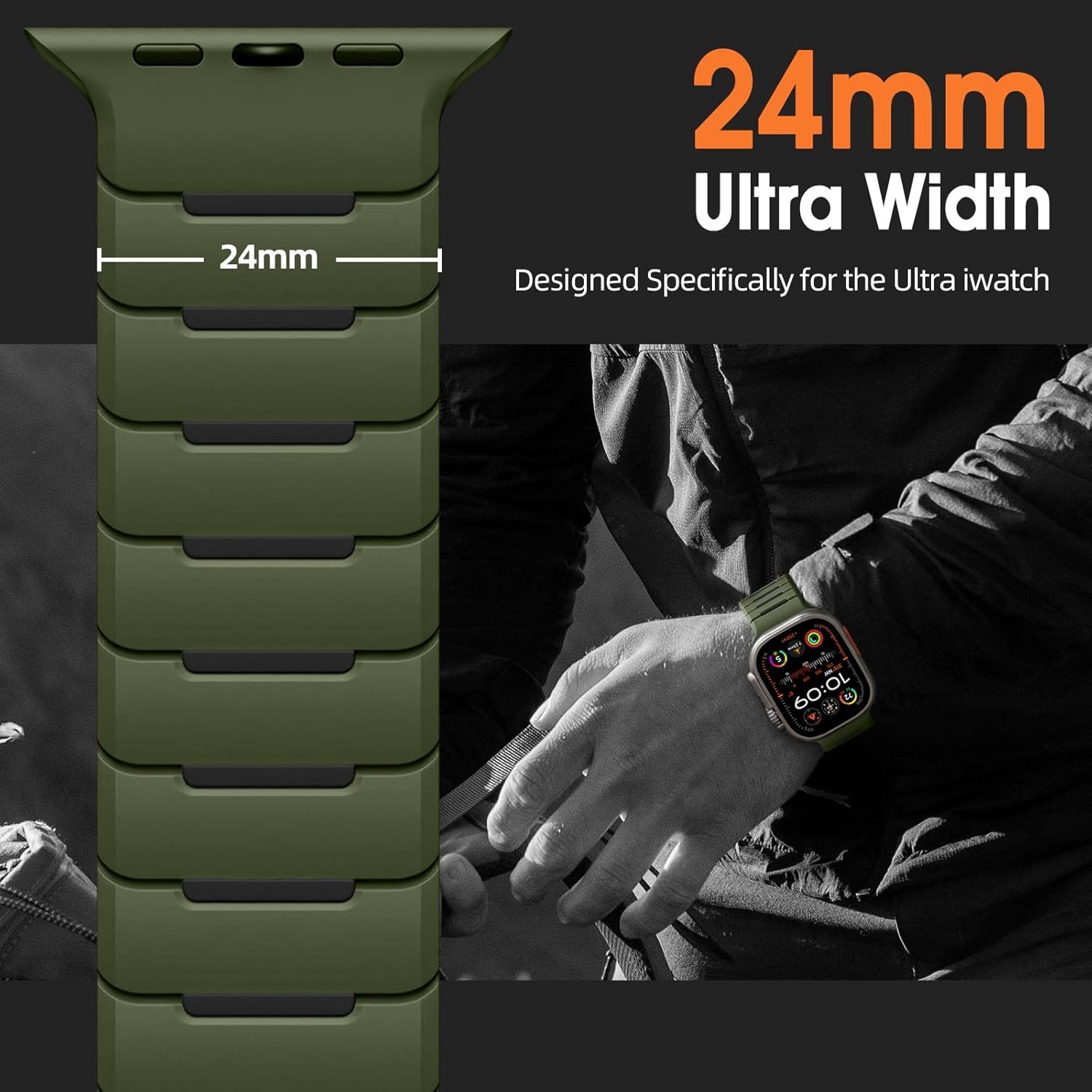Compatible Models: -Compatible with Apple Watch Ultra 2 / Utra 49 mm; -Compatible with Apple Watch Series 10 (46 mm / 42 mm); -Compatible with Apple Watch Series 9 (41 mm / 45 mm); -Compatible with Apple Watch Series 8 (41 mm / 45 mm); -Compatible with Apple Watch Series SE SE2 (41 mm / 45 mm); -Compatible with Apple Watch Series 7 (41 mm / 45 mm); -Compatible with Apple Watch Series 6 (40 mm / 44 mm); -Compatible with Apple Watch Series 5 (40 mm / 44 mm); -Compatible with Apple Watch Series 4 (40 mm / 44 mm); -Compatible with Apple Watch Series 3 (38 mm / 42 mm); -Compatible with Apples Watch Series 2 (38 mm / 42 mm); -Compatible with Apples Watch Series 1 (38 mm / 42 mm) 【Unique Design】 Easuny's 24mm strap, perfectly suited for Apple Watch's larger chassis, provides a flawless fit and visual symmetry. Its bold color contrast design lends your watch a distinctive, dynamic appeal, ensuring it's the center of attention in every setting. 【Built for Sports】 The Easuny Sports Magnetic Strap is engineered to meet the demands of the most active lifestyles. With its robust construction and sleek aesthetics, it's designed to withstand the rigors of your workouts. This strap offers a secure fit that moves with you, whether you're hitting the trails, swimming laps, or pushing through a high-intensity interval training session. Its durable material ensures comfort and flexibility, while the magnetic closure provides effortless adjustment and convenience. Embrace the spirit of sports with a strap that's as committed to performance as you are.