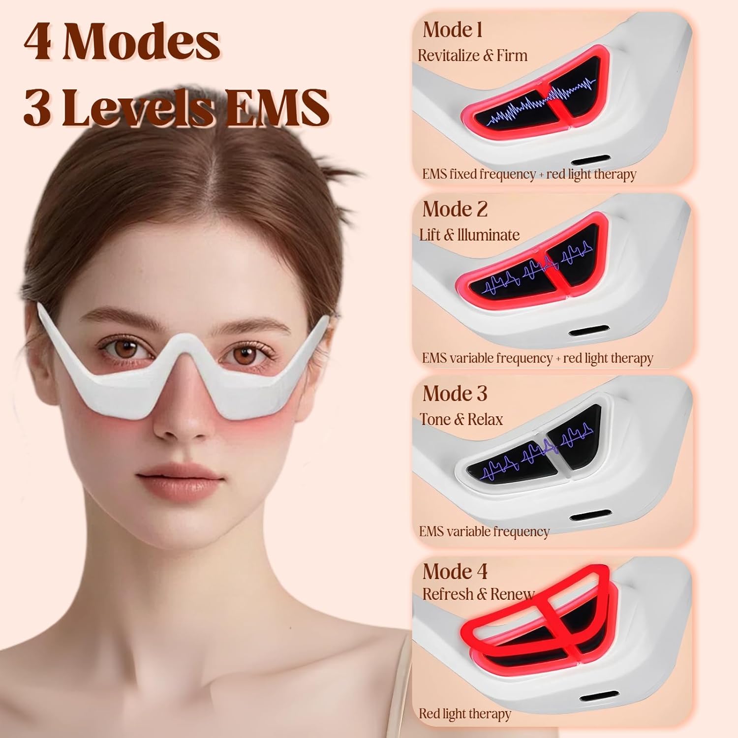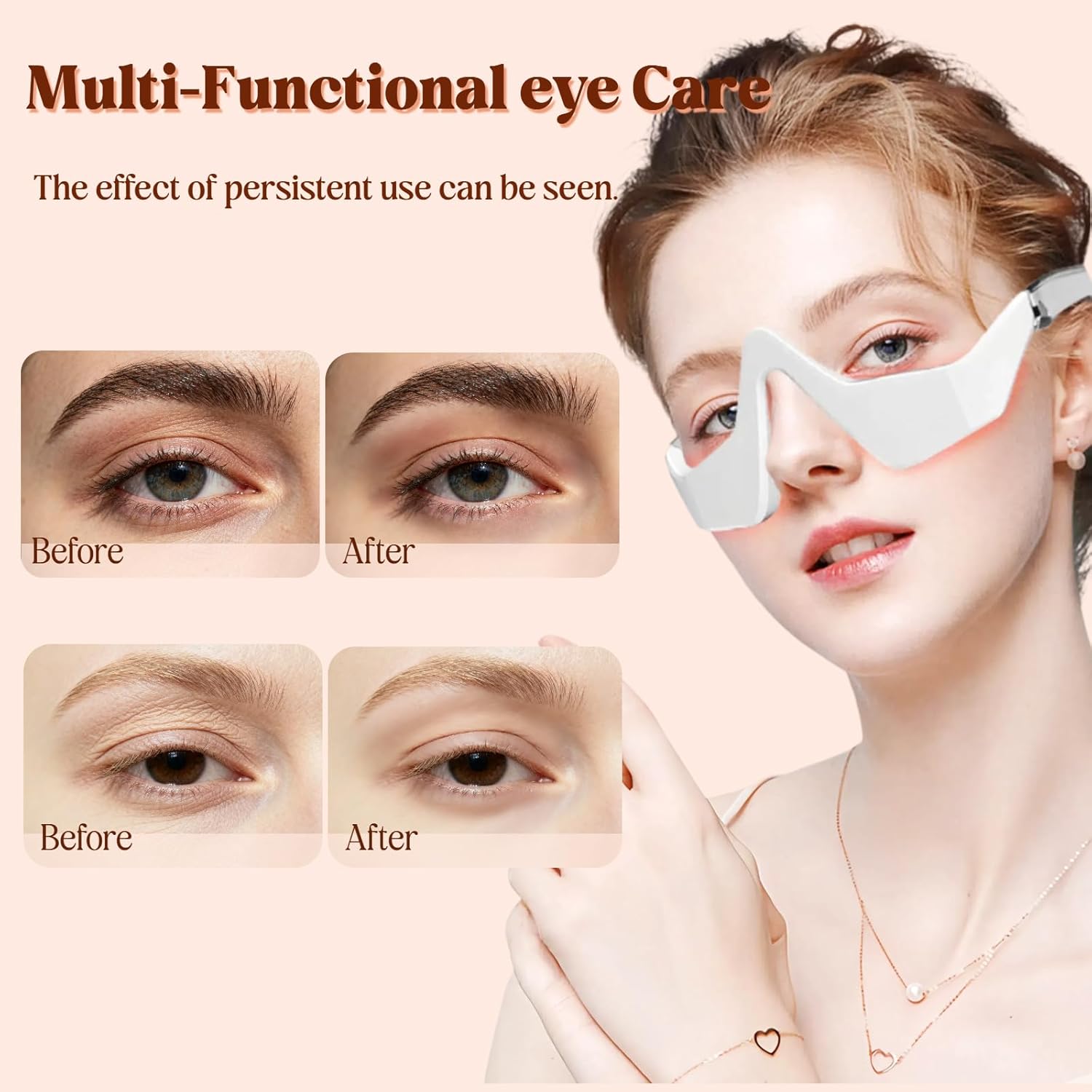 Revitalize your eyes with our Eye Lift Device with Red Light Therapy. Designed to target wrinkles, dark circles, and puffiness, this advanced eye massager combines red light, heat, and gentle vibration to deliver visible results and promote youthful skin.Eye Lift & Anti-Aging: Red light therapy helps reduce fine lines and crow’s feet.Under-Eye Care: Minimizes puffiness, dark circles, and eye bags for refreshed eyes.Heat & Vibration: Gentle warmth and massage enhance relaxation and boost skincare absorption.Rechargeable & Portable: USB charging and compact design make it convenient for home, office, or travel use.Beauty Gift: A thoughtful skincare gift for women who want radiant, youthful eyes.SpecificationProduct Name: Eye Lift DeviceColor: WhiteWeight: 225 gPlug: Type-CBattery Capacity: 90 mAhGear: 3 Adjustable GearsMode: 2 ModesProduct Size: 16 × 10.5 × 7 cmPackage Includes1 × Eye Lift Device1 × USB Cable1 × BoxPreparation Before UseLong press the button to check if the device enters working mode.Clean your face thoroughly (remove makeup), especially around the eye area.Apply water or gel on the working patch or under-eye area to ensure proper skin contact.A Friendly ReminderDue to lighting effects and shooting angles, the color of the item may slightly differ from the pictures.Due to manual measurement, there may be slight size variations.If you encounter any problems, please contact us immediately—we will provide the best service and resolve the issue promptly.