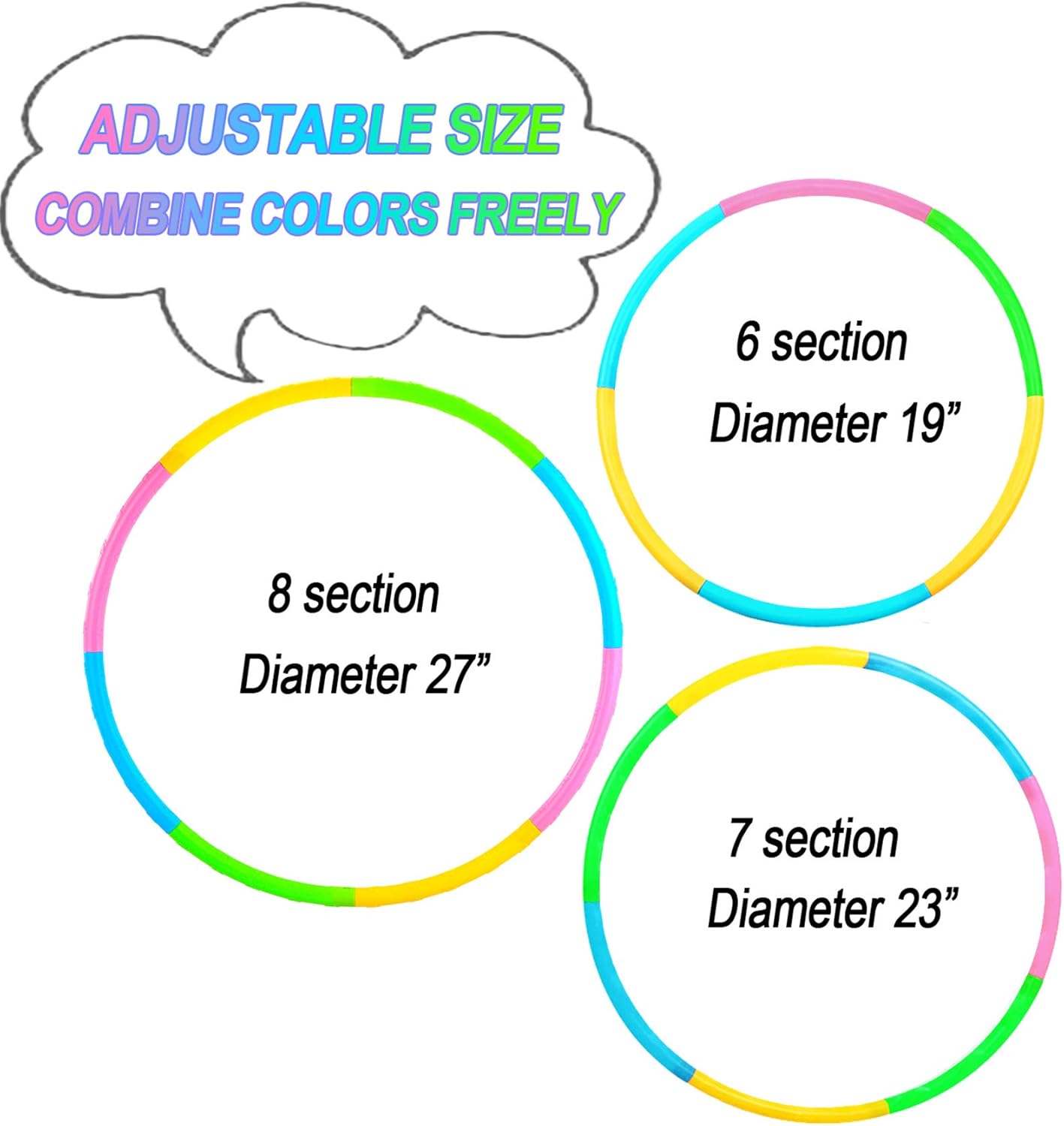 The Benefits Of Children's Fitness Exercise Hoops ✔ Improve balance and flexibility as well as coordination, developing kids gross motor skills. ✔ Fitness exercise hoops,children can use kids hoops do more sports to improve running and jumping ability, sports skills, balance ability, stimulate interest in sports, which is conducive to the healthy development of children's body and mind. ✔ This kids exercise hoops is perfect for all kinds of parties or events.It is suitable for many games, such as jumping laps, competition rotating hoops, etc. ✔ If you have pets, it can also be used as a pet toy to train agility.
