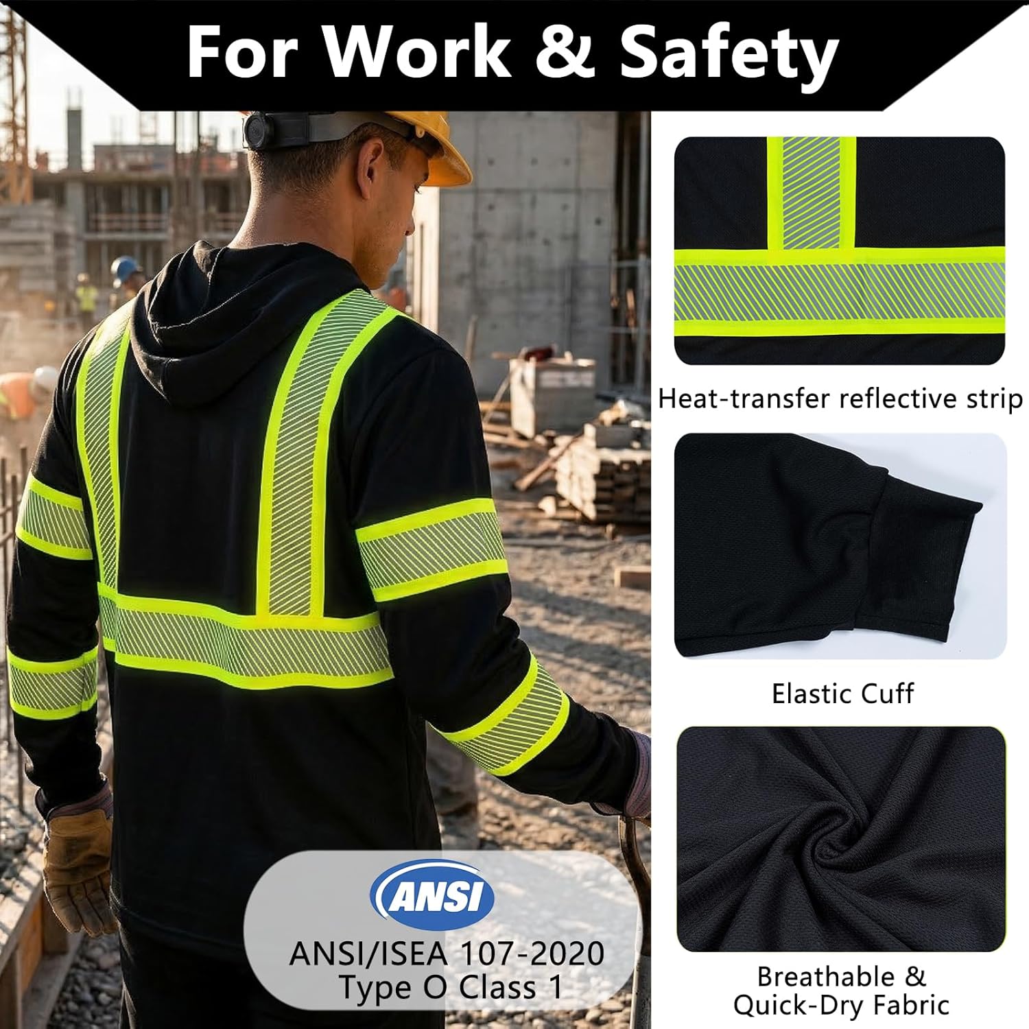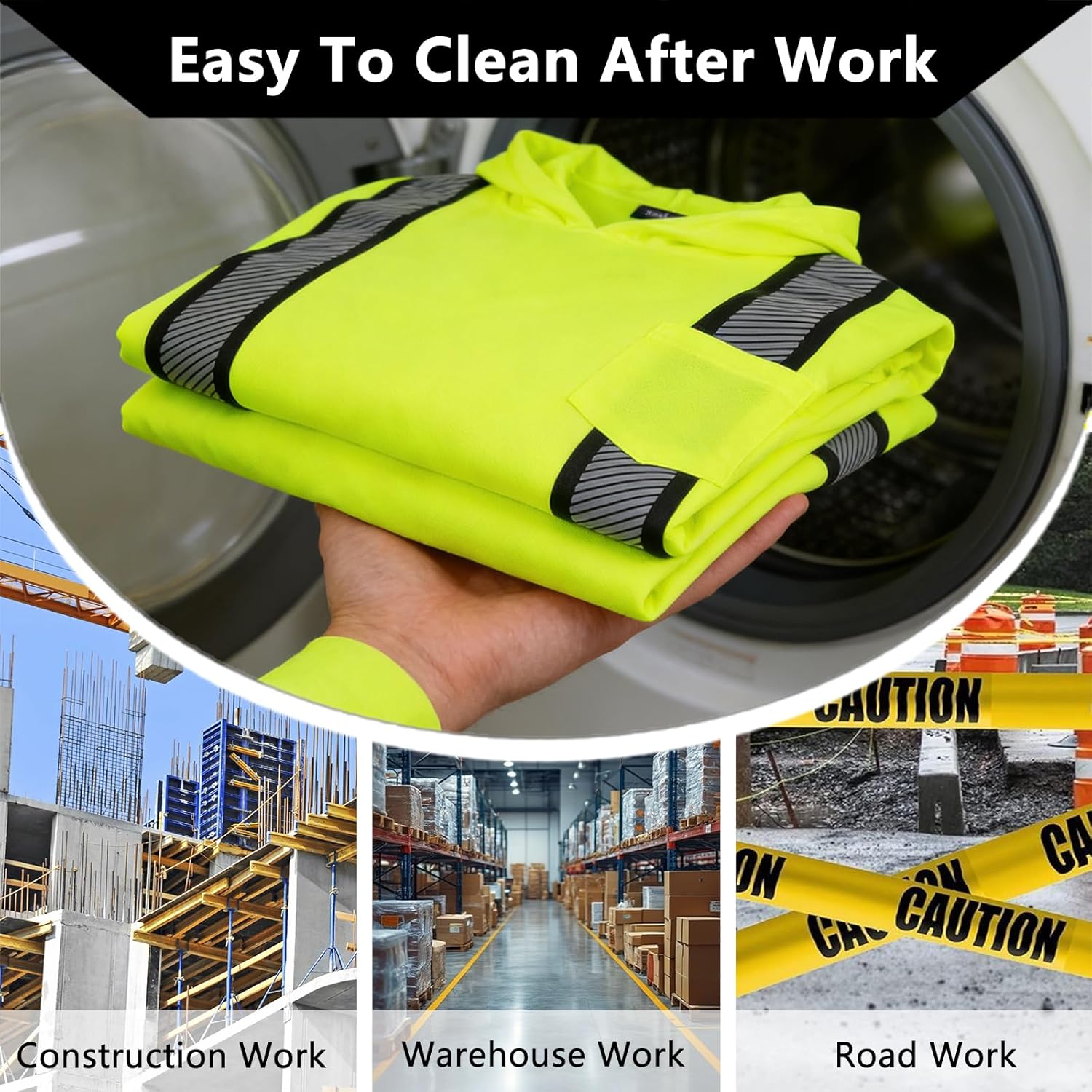 This long sleeve high visibility safety shirt is designed to meet ANSI/ISEA 107-2020 Class 3 Type R (Yellow) and Class 1 Type O (Black) standards, ensuring reliable visibility and compliance for various work environments. The reflective strips feature twill heat-transfer printing technology with contrasting color backing fabric, greatly improving durability and visual effect for enhanced daytime and nighttime visibility. Made from breathable, lightweight and quick-drying fabric, this shirt keeps you cool, comfortable and focused all day long, making it perfect for construction, road work, utilities, emergency response and other demanding jobs.