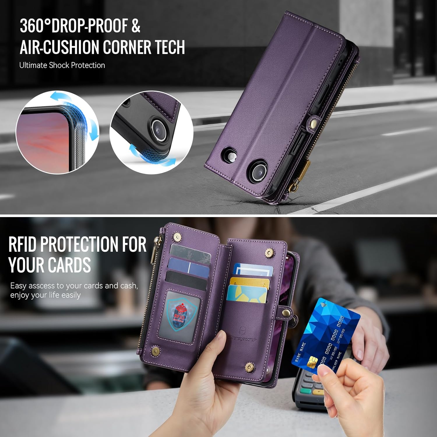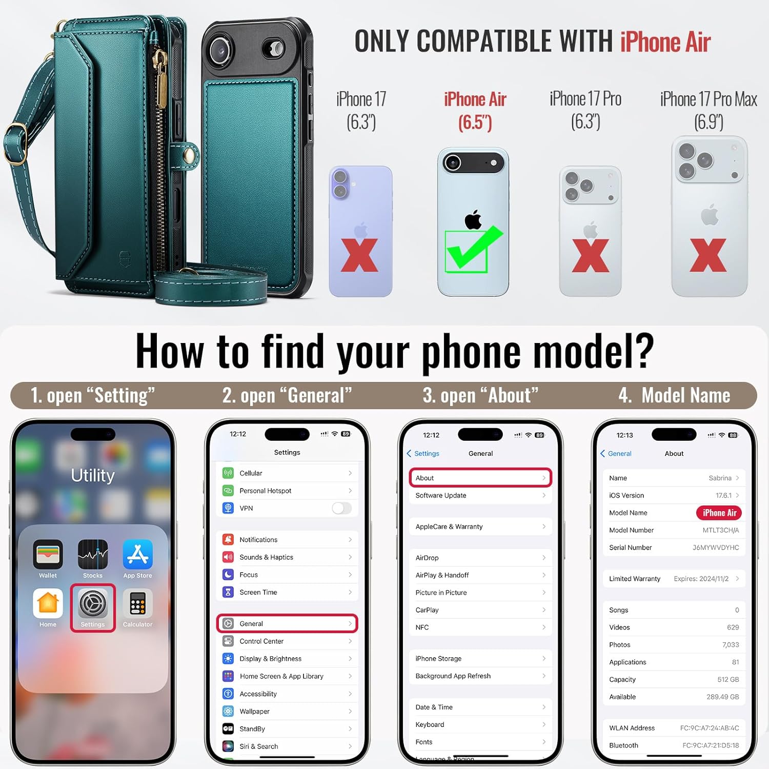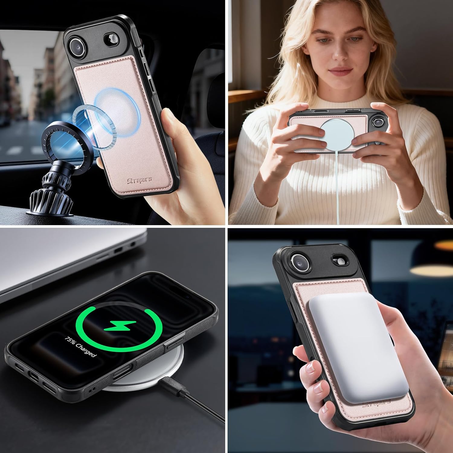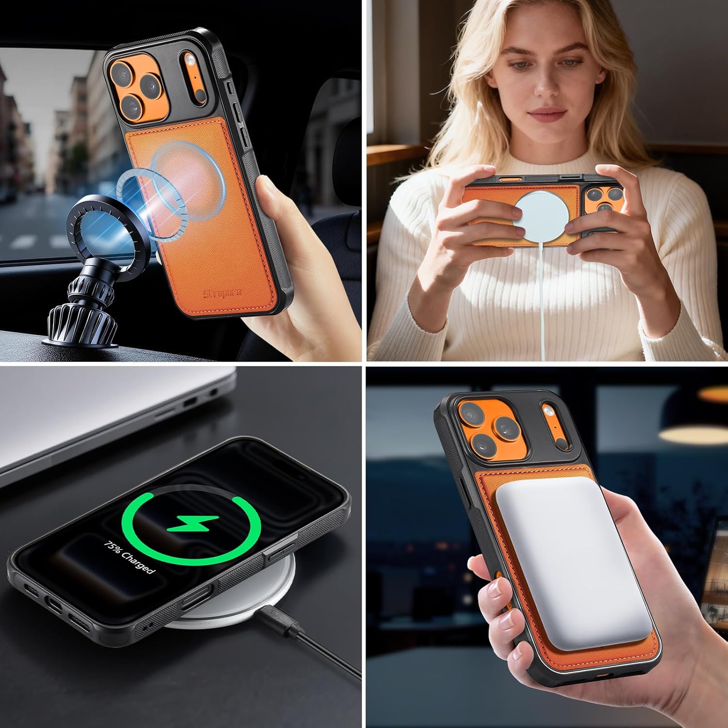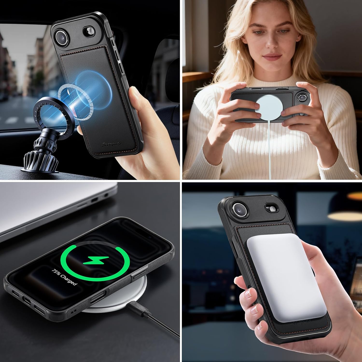 | Additional Features | 1 Magnetic Flap Pouch, 1 Zipper Pocket, 1 Cash Pocket, 2 in 1 Magnetic Detachable, 9 Card Slots With RFID Blocking, Compatible with MagSafe, Crossbody Lanyard & Wrist Strap |