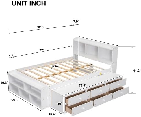 | Included Components | Bookcase Headboard, Under bed Storage Drawers and Bed End Storage Case |