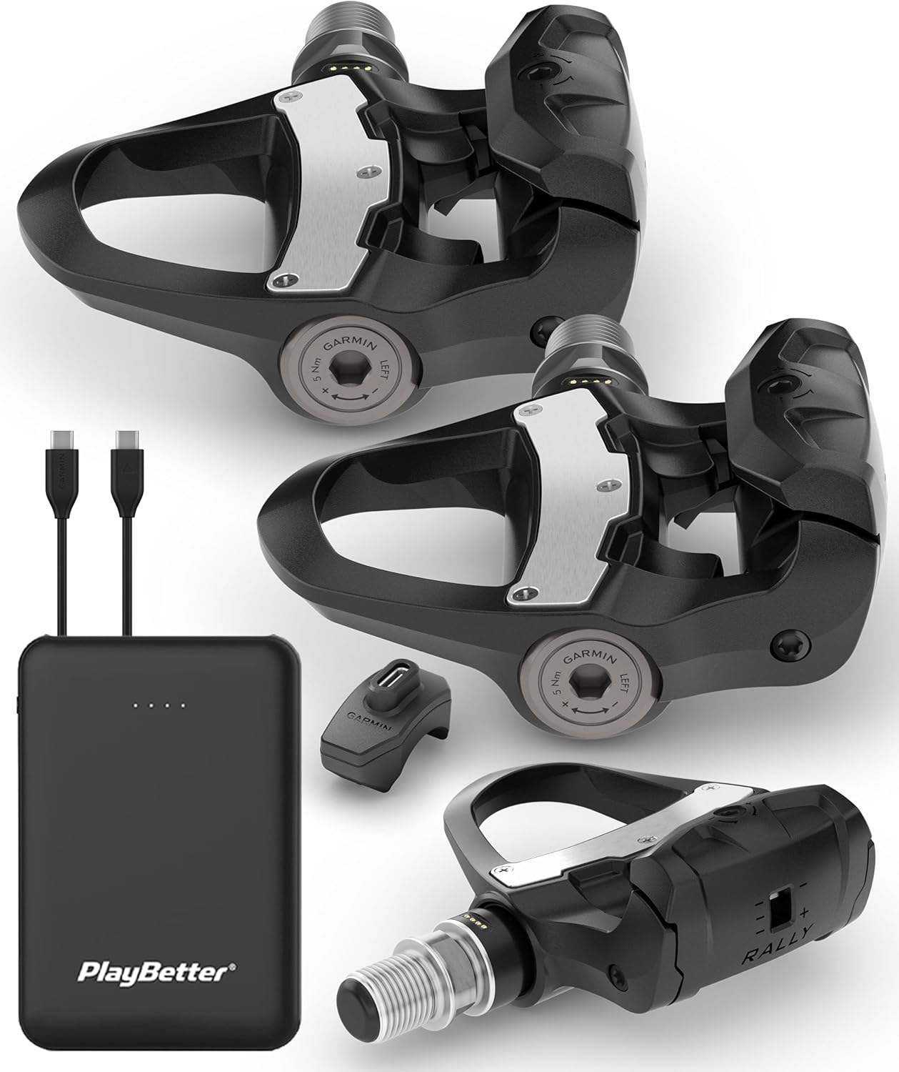 | BuiltIn Media | 2 x Charging Clip and Charging Cable, Garmin Rally RS210 Pedal-Based Power Meter, Hardware, PlayBetter #Z05 5000mAh Powerbank, SHIMANO SPD-SL Compatible Cleats |