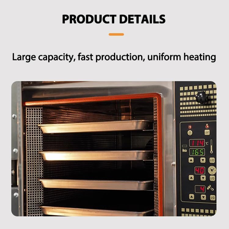 Specification: weight: 500 condition:New dimension(l*w*h):Custom width, Height: Custom control Type: Touch Control configuration: Rotary, Conveyor heat source: Steam, Hot Air, Combustion door style: French Door, Dropdown Door, Side Swing special Feature:Adjustable Thermostat, Steam Feature, Large Capacity function:Baking, Steaming, heating, Roasting, Convection Baking Highlishts: The controllable time and duration of spray can increase the heat conduction capacity, bring your products beautiful cut openings, ideal dough expansion. The air duct system is designed, and the rotating model can also rotate baking. Whether grilling or baking products, uniform effects can be achieved through continuous hot air. Multiple models from five to sixteen are available, suitable for different kitchen spaces and providing sample capacity for your food.