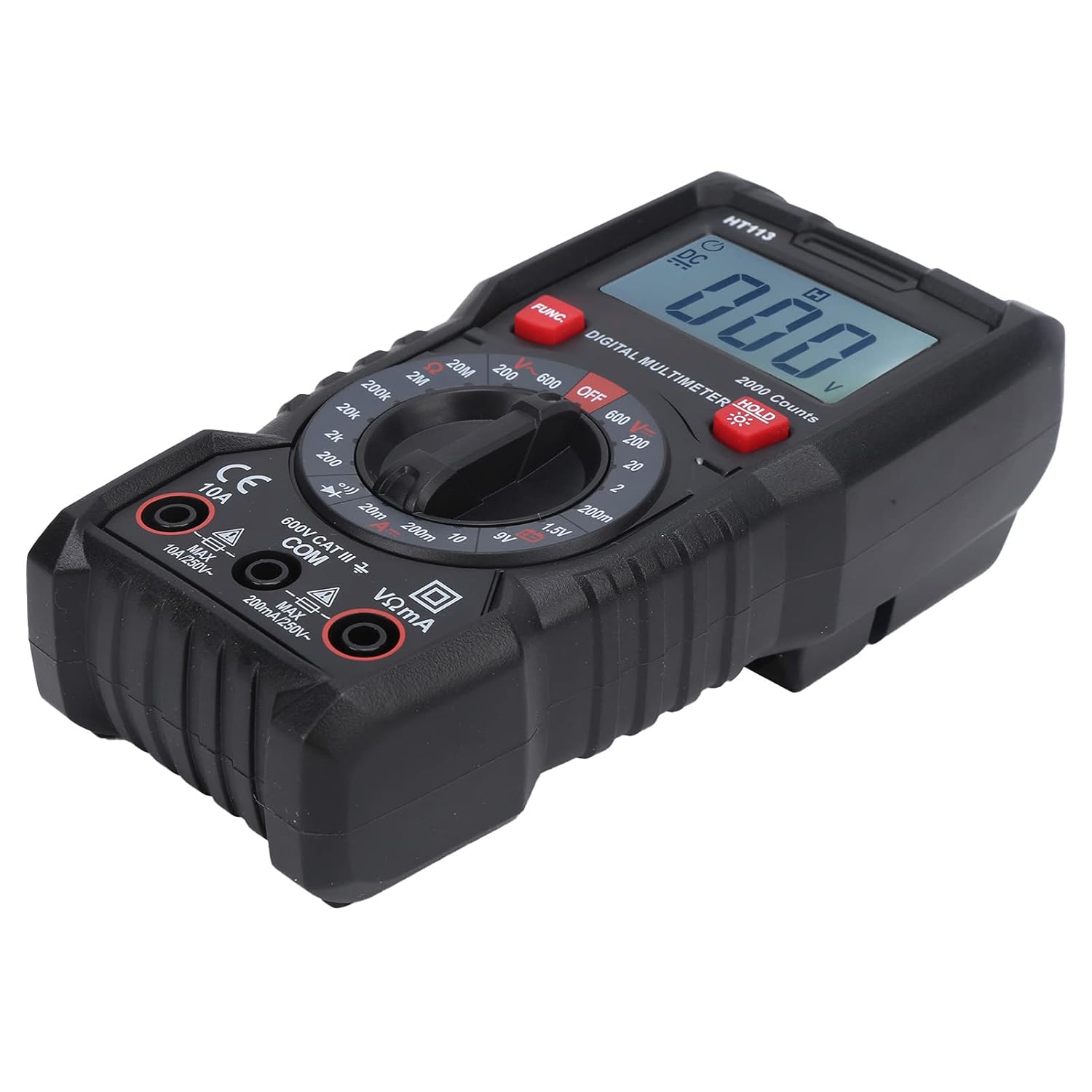How to Use: 1. The multimeter should be "mechanical zero" before use. 2. When there is no power to be measured, the pointer of the multimeter is applicable to point to zero voltage or zero current. 3. The multimeter must be placed horizontally when using it to avoid errors. 4. When measuring a certain amount of electricity, you cannot change gears during the measurement. Pay attention when measuring high voltage or large current, otherwise the multimeter will be destroyed. 5. When you need to change gears, disconnect the meter pen and change gears before measuring. 6. After use, the transfer switch should be set to the maximum range of AC voltage. Specification: Item Type: Digital Multimeter Model: HT113 Material: ABS Power Supply: 2 x AAA 1.5V (battery not included) Purpose: Electricity Numerical Measurement Environment Temperature: 18?~28? Relative Humidity: less than 80% Functional Indicator Range HT113 DC Voltage 200mV/2V/20V/200V/600V AC Voltage 200V/600V DC Current 20mA/200mA/10A AC Current 20mA/200mA/10A Resistance 200?/2K?/20K?200K?/2M?/20M? Package List: 1 x Multimeter (Battery Not Included) 2 x Test 1 x Manual Note: In order to prevent possible electric shock, individual injury or damage to the instrument, please use the same or specified fuse.