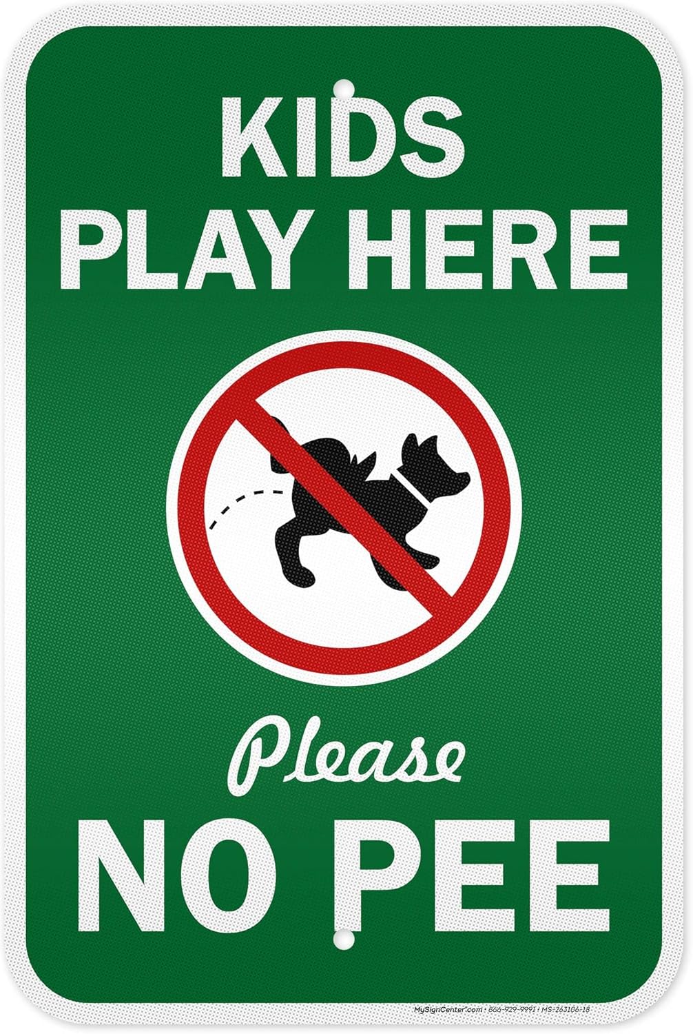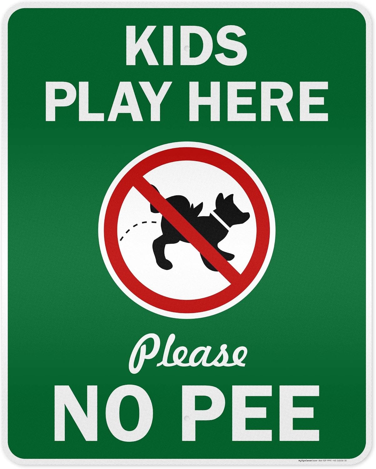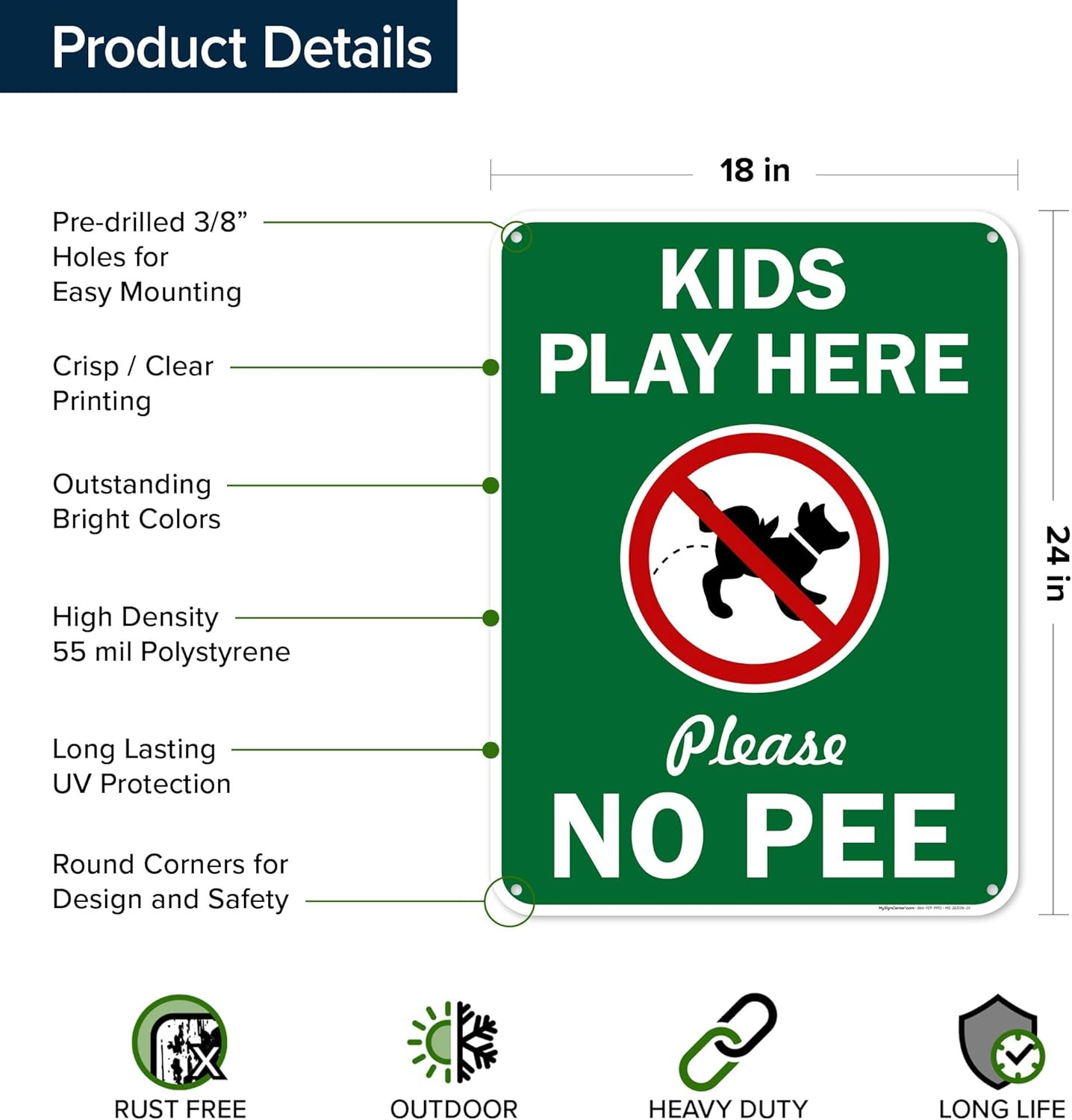 Kids Play Here Please No Pee With Prohibited Sign, 18x24 Inches, 55 mil thick HDPS (high density polystyrene), Made in USA by My Sign Center
