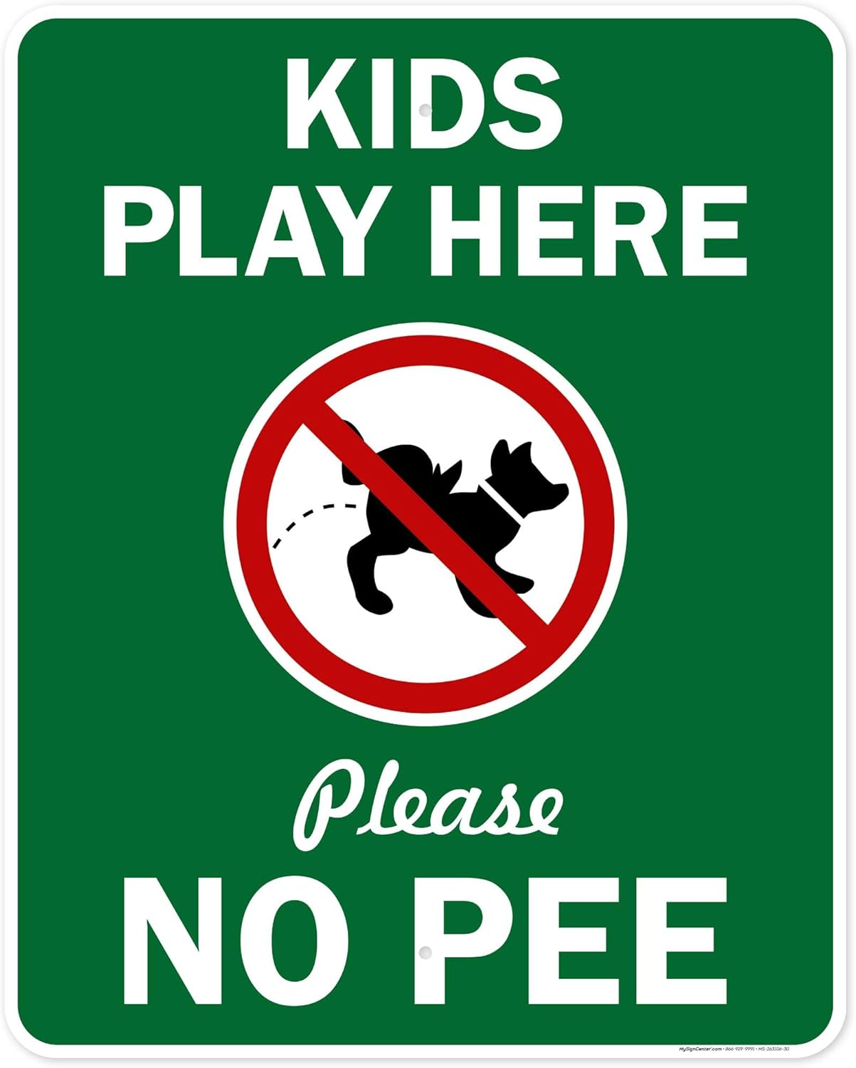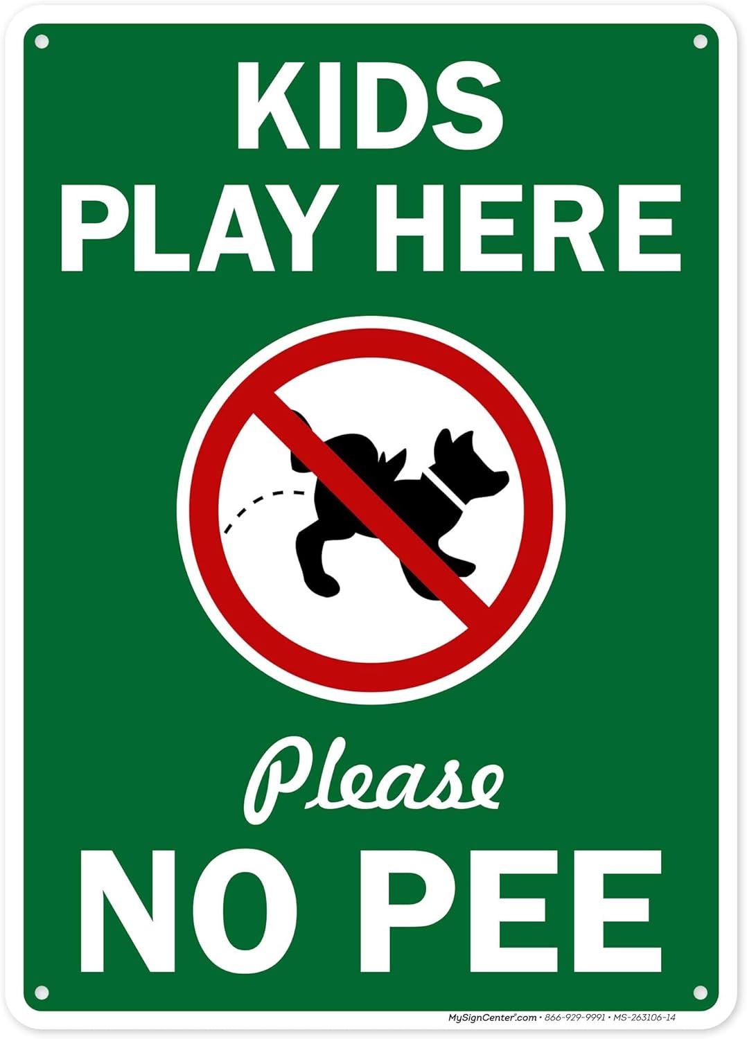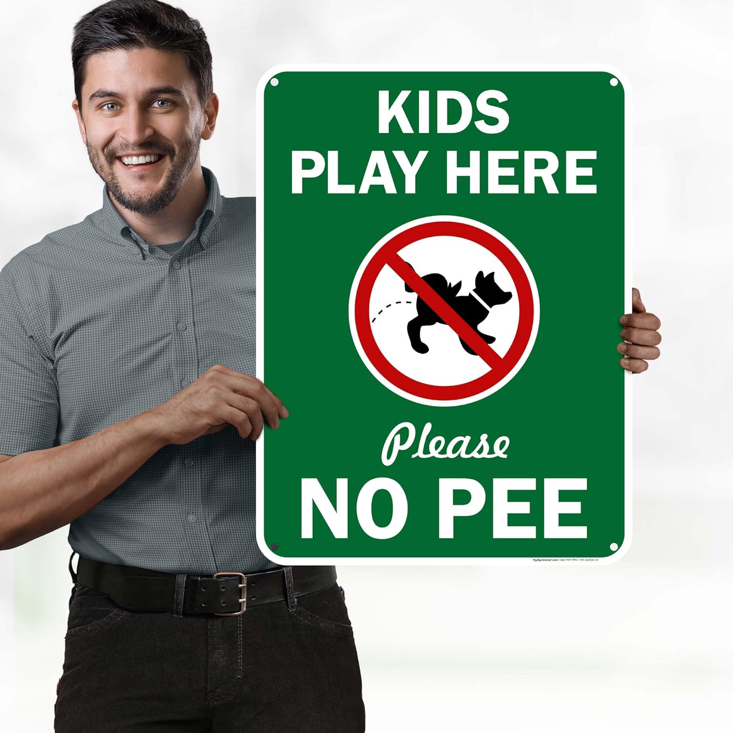 Kids Play Here Please No Pee With Prohibited Sign, 18x24 Inches, 55 mil thick HDPS (high density polystyrene), Made in USA by My Sign Center