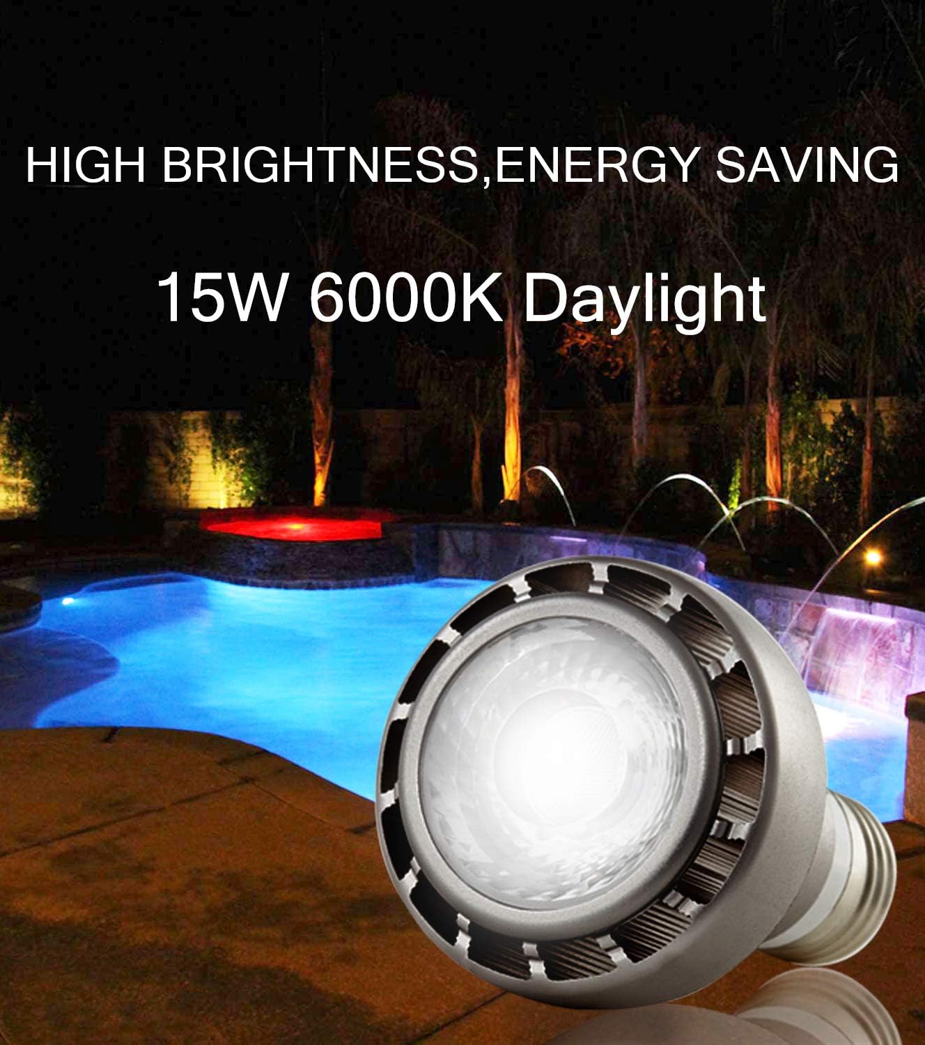 • Saving Energy: 120V 15W LED spa light bulb, has 1500 lumens and with bright white 6000K. Perfect to replace 100W-400W HPS/ Halogen bulbs or incandescent lamps but save more 80% energy and reduce your electricity bills!