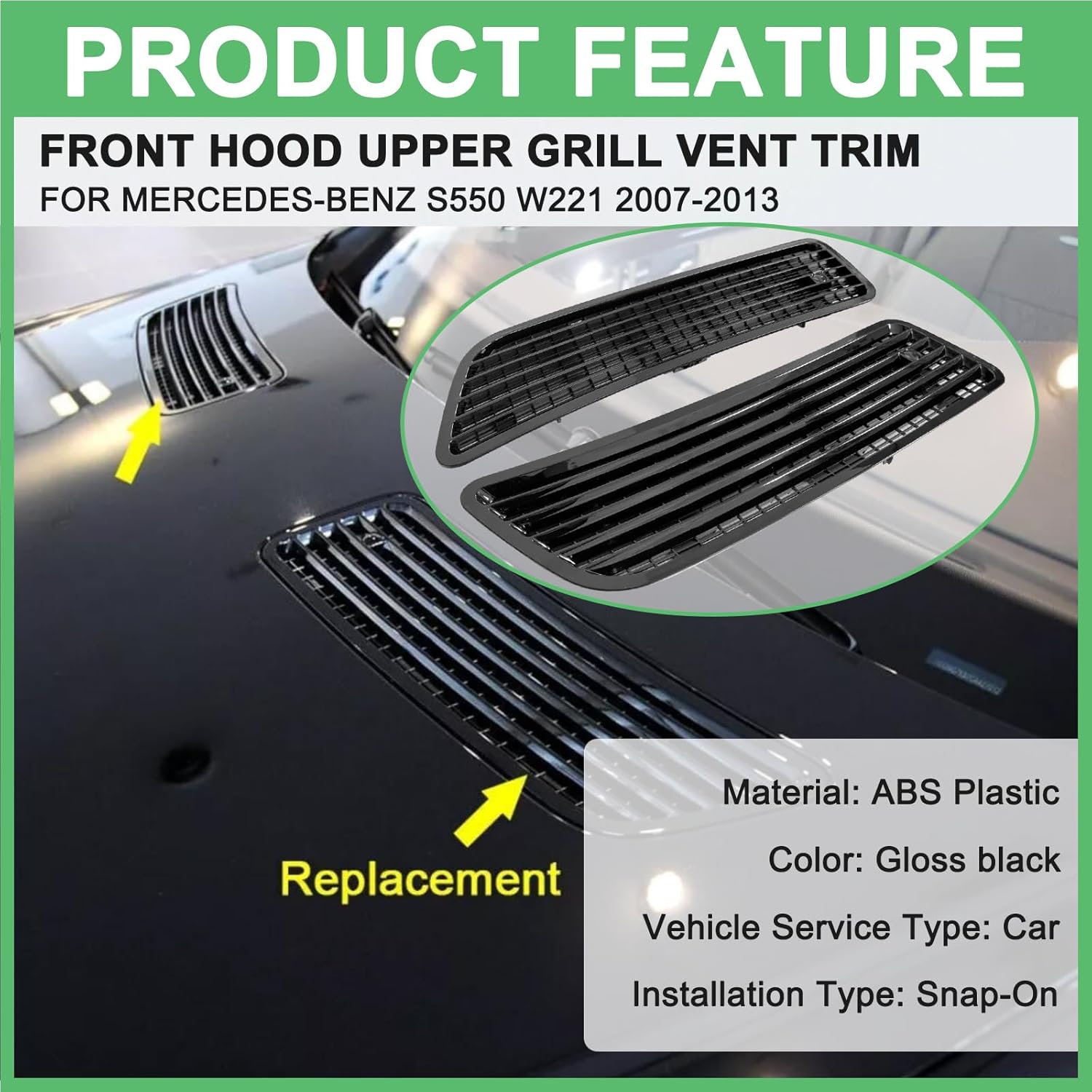 | Included Components | Front Hood Bonnet Grill Vent |