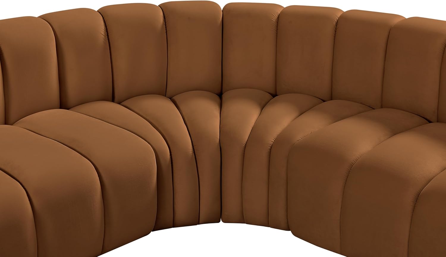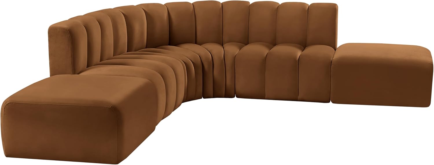 Give your living room or den the perfect blend of style and versatility with this Arc velvet fabric curved modular Sectional. Part of the Arc modular furniture collection, this Sectional comes upholstered in rich saddle velvet fabric and features deep channel tufting that adds a touch of luxury while enhancing comfort and support. A seamless combination of form and function, this chair can be used with other Arc pieces to create a myriad of configurations in your well-curated room.