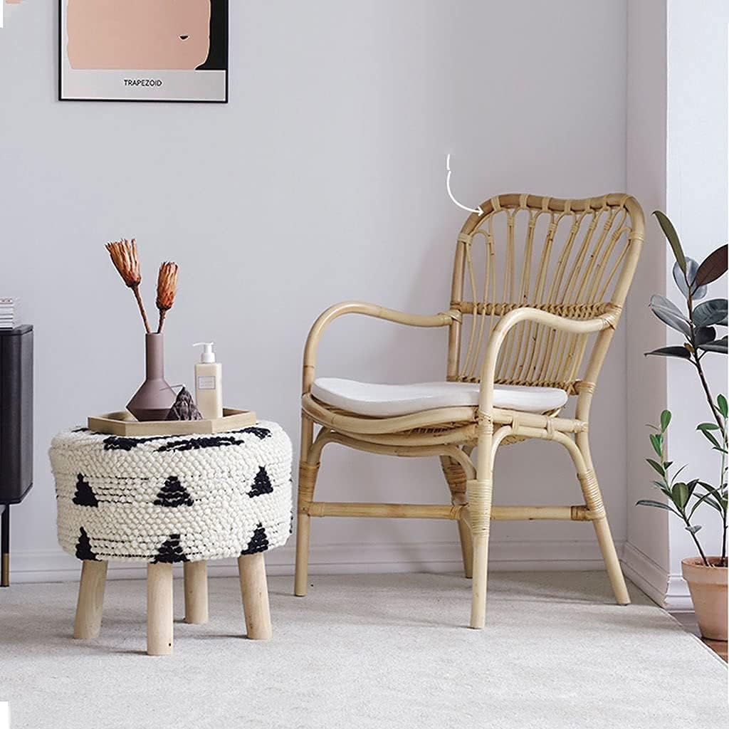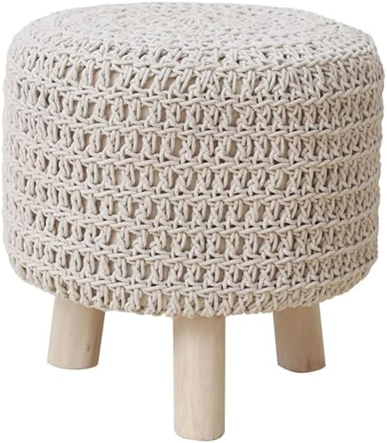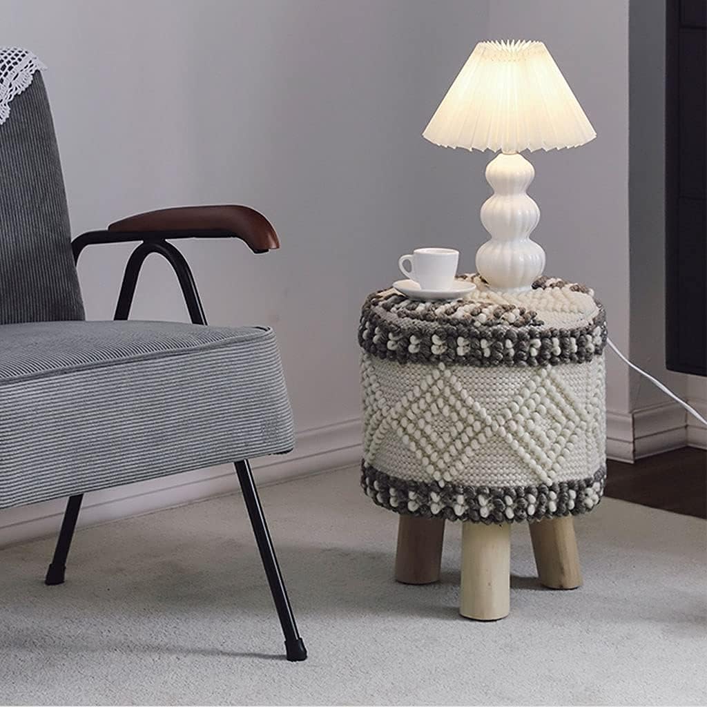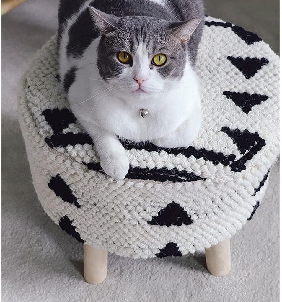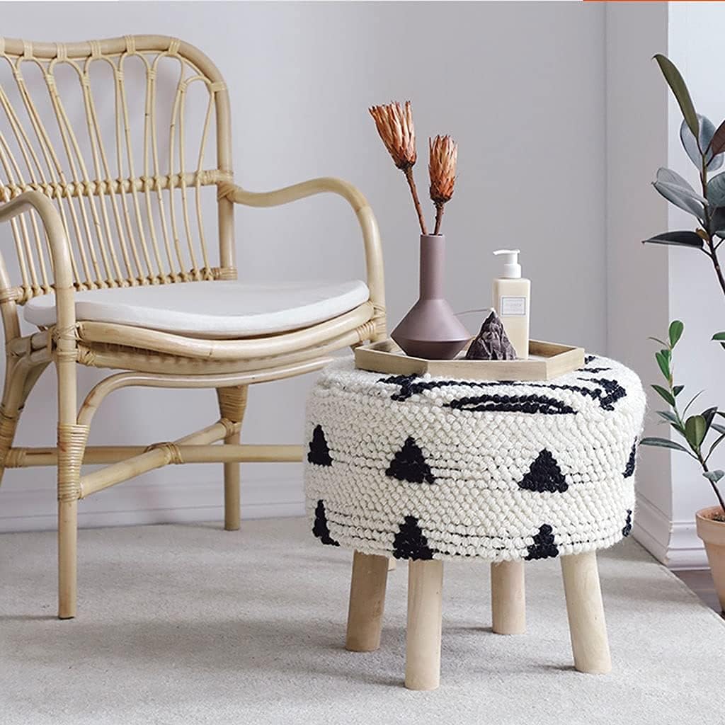 Name: StoolMaterial: WoodWood Material Quality: OtherPattern: ArtStyle: PastoralColor: WhiteGross Weight: 5KgAdditional Function: MobileApplicable Object: AdultFurniture Structure: Soft StructureWhether to Assemble: Whole AssemblyStyle Positioning: Artistic StyleMaterial: Wool/Cotton, Filled with Styrofoam Particles, Wooden Stool Legs,
