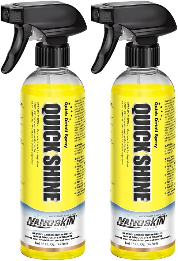Nanoskin QUICK SHINE Quick Detail Spray: A Must-Have Tool for Car Detailing EnthusiastsWhen it comes to keeping your car looking its best, a high-quality quick detail spray is a must-have tool. The Nanoskin QUICK SHINE Quick Detail Spray is a versatile, easy-to-use spray that provides a deep gloss and protection for your car's paint.Designed for both home users and professional detailers, Quick Shine is a proprietary blend of polymeric lubricating agents that effectively remove dust, fingerprints, smudges, and other contaminants from your car's paint, leaving a showroom shine. The pre-diluted formula is also an excellent clay bar lubricant, allowing you to easily glide your clay over the paint without any damage.Not only is Quick Shine a versatile detailer spray, it is also incredibly easy to use. The ready-to-use, high-lubricity formula is safe on paint, glass, chrome, wheels, grilles, and trim, making it a multi-purpose tool that you can use to clean and shine your car with just a mist. The quick and easy spray-on, wipe-off process saves you time and gives you the results you want.In addition to its uses as a detailer spray and clay lubricant, Quick Shine can also be used as a pad primer, quick polishing booster, gloss enhancer, wax booster, waterless wash dust cleaner, and even as a drying aid. This makes it an essential item for any car detailing enthusiast's arsenal of cleaning supplies.In essence, the Nanoskin QUICK SHINE Quick Detail Spray is a versatile, effective, and easy-to-use spray that provides a deep gloss and protection for your car's paint. Whether you're a home user or a professional detailer, Quick Shine is a must-have tool for keeping your car looking its best.