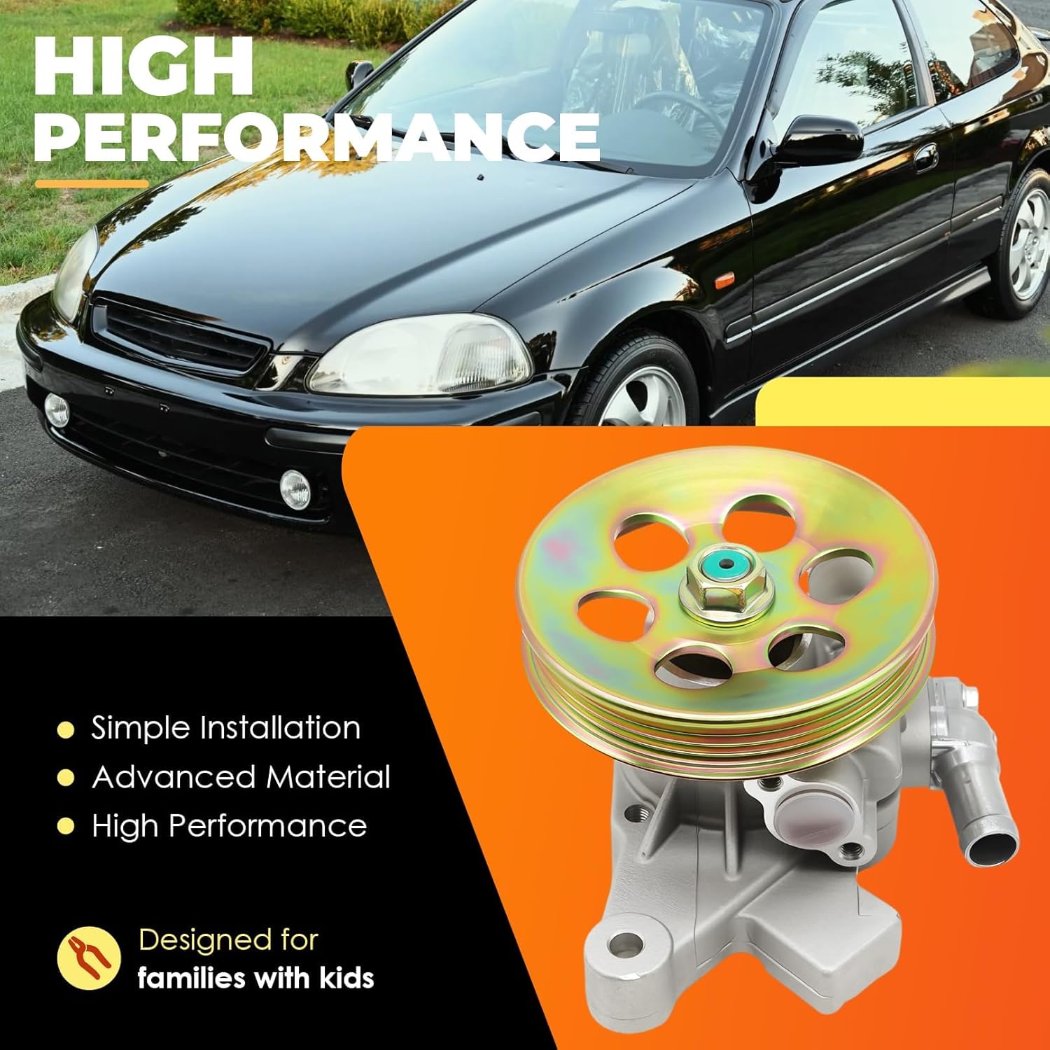 Feature - Type: Power steering pump Items Included: Pully Placement on Vehicle: Front Application - Power steering pump compatible with CR-V EX Sport Utility 4-Door 2.0L 1998 1999 2000 2001 Power steering pump compatible with CR-V LX Sport Utility 4-Door 2.0L 1997 1998 1999 2000 2001 Power steering pump compatible with CR-V SE Sport Utility 4-Door 2.0L 2000 2001 Power steering pump compatible with EL Base Sedan 4-Door 1.6L Base Sedan 4-Door 1997 1998 1999 2000 Power steering pump compatible with Civic CX Hatchback 2-Door 1.6L 1996 1997 1998 1999 2000 Power steering pump compatible with Civic DX Coupe 2-Door/ DX Hatchback 2-Door/ DX Sedan 4-Door 1.6L 1996 1997 1998 1999 2000 Power steering pump compatible with Civic EX Sedan 4-Door/ EX Coupe 2-Door 1.6L 1996 1997 1998 1999 2000 Power steering pump compatible with Civic EX-R Coupe 2-Door/ EX-R Sedan 4-Door 1.6L 1998 1999 2000 Power steering pump compatible with Civic EX-R SIR Coupe 2-Door 1.6L 1999 2000 Power steering pump compatible with Civic HX Coupe 2-Door/ LX Sedan 4-Door/ Si Coupe 2-Door 1.6L 1996 1997 1998 1999 2000 Power steering pump compatible with Civic GX Sedan 4-Door 1.6L 1998 1999 2000
