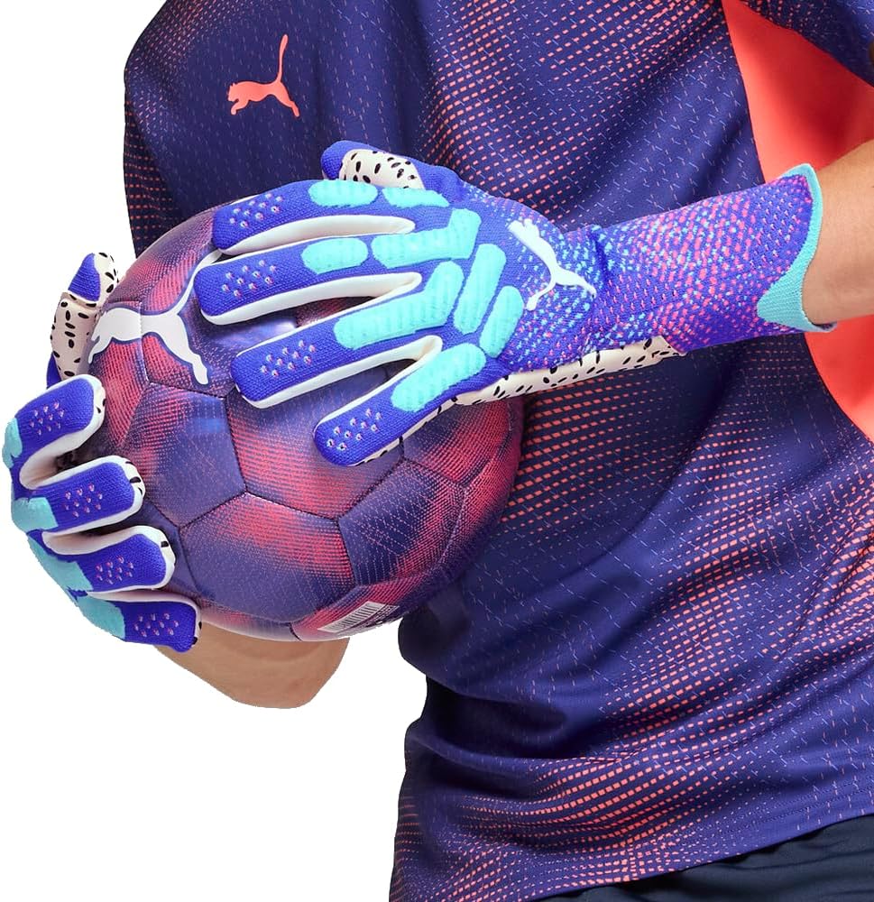 Unleash Your Inner Football Goalkeeper With Puma's Latest Gloves. Featuring 4Mm Elite+ Dual Grip 2.0 Palm Latex, A Knitted Backhand, And Latex Finger Gussets, These Gloves Offer Unparalleled Grip, Fit, And Control. Get Ready To Own The Goal.