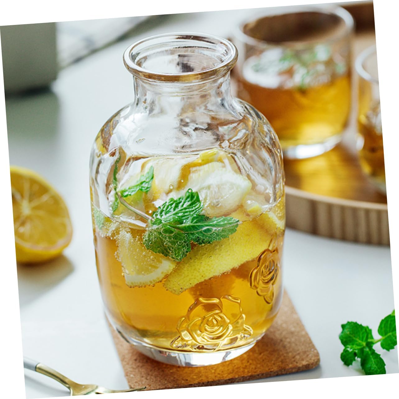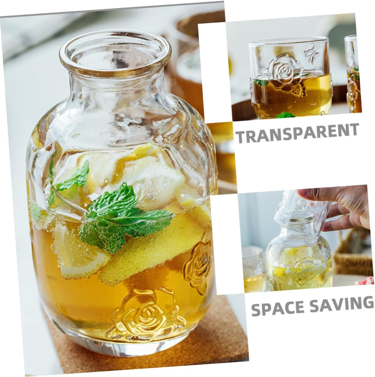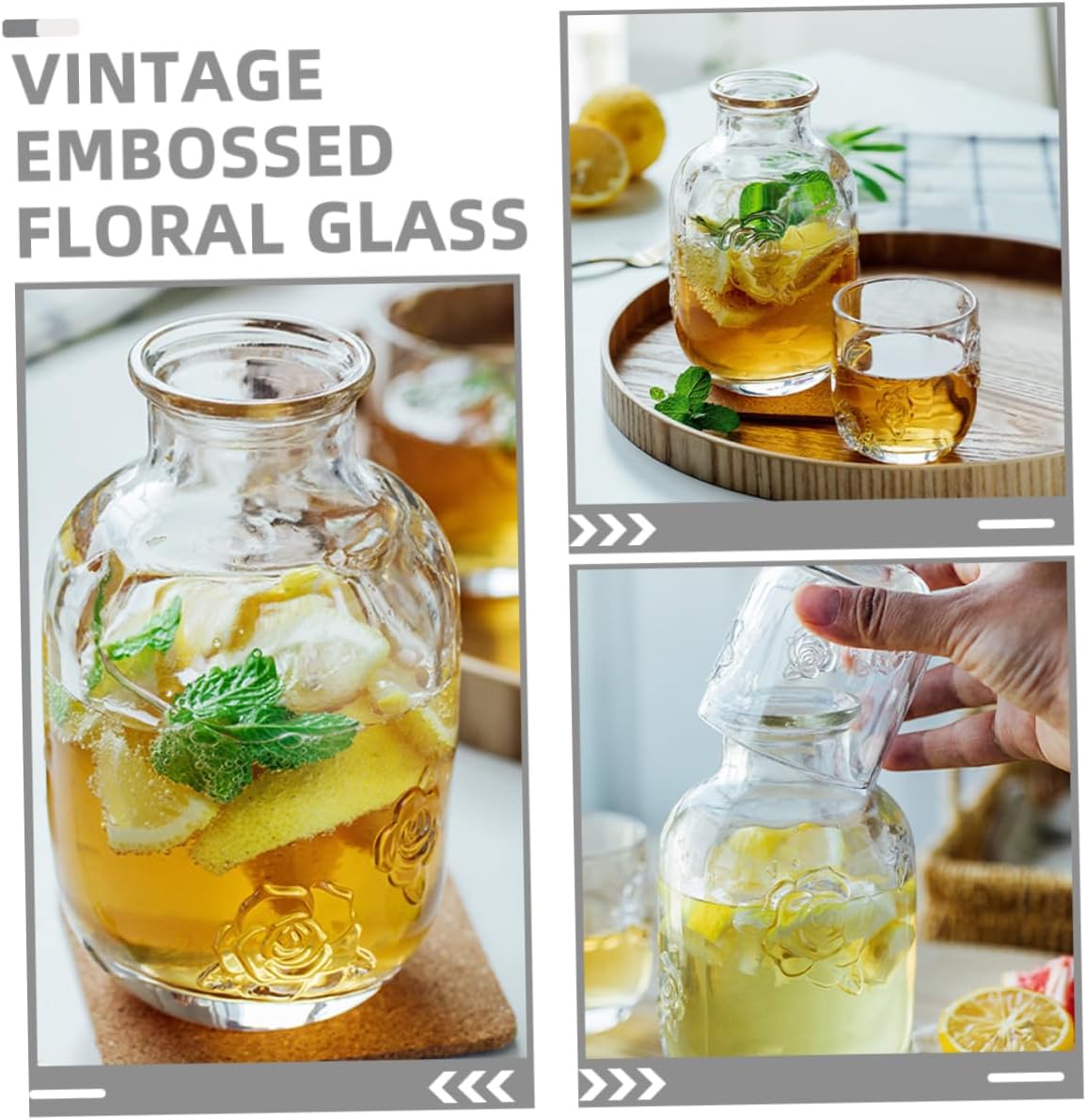 DescriptionAdd a touch of elegance to your drinkware collection with this vintage-inspired glass teapot and cup set. The beautifully embossed floral patterns make it a standout piece, for serving fruit juice, iced tea, or water. Its construction it can withstand regular use, making it a yet stylish choice for any home.Features-Color:Transparent-Material:Glass-Size:14.50X9.00X9.00cm/5.70X3.54X3.54in-Size:7.20X6.60X6.60cm/2.83X2.59X2.59in-Sophisticated floral design: the vintage floral design on the glass teapot and cup set adds a sophisticated and elegant to your kitchen decor-Convenient and : the teapot and cup set is designed for convenience, making it easy to serve drinks while saving space-Versatile beverage options: suitable for a variety of beverages including fruit juice and cold water, making it a versatile choice for any occasion-Ideal for cold beverages: for serving cold beverages, ensuring your drinks stay cool and refreshing-Enhances aesthetics: this set not only serves a purpose but also enhances the aesthetic appeal of your home decor