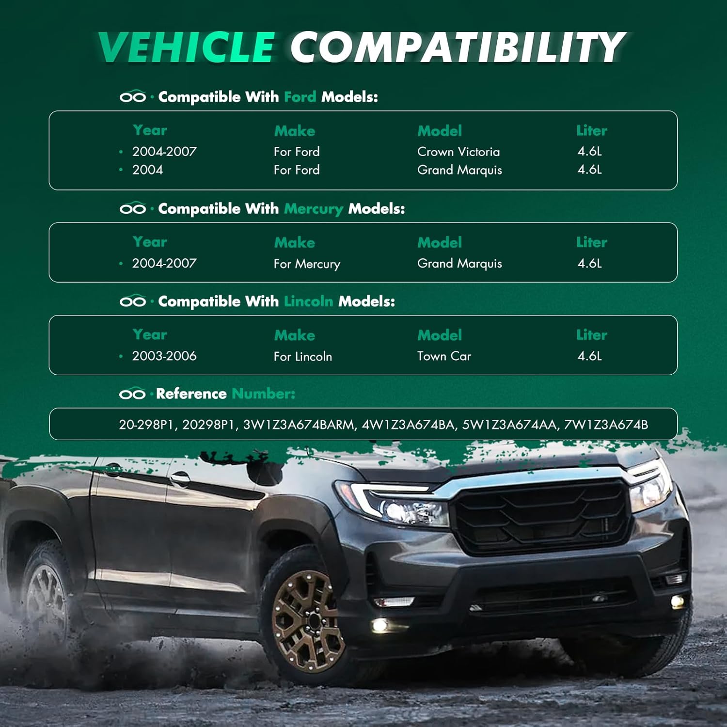 Fit for:For Ford Crown Victoria 2004-2006 For Crown Victoria 2007 (with Police Package) For Lincoln Town Car 2003-2005 (Limousine), Town Car 2006 For Mercury Grand Marquis 2004-2006, Grand Marquis 2007-2007 (with Police Package)When Your Power Steering Pump Need to Be Replaced1.unusual noise, when you turn the steering wheel2.shimmy or shakes in the steering wheel3.heavy or unresponsive steering at low speeds4.the steering wheel can not return to center properlyOEM Number:20-298P1, 20298P1, 3W1Z3A674BARM, 4W1Z3A674BA, 5W1Z3A674AA, 7W1Z3A674B