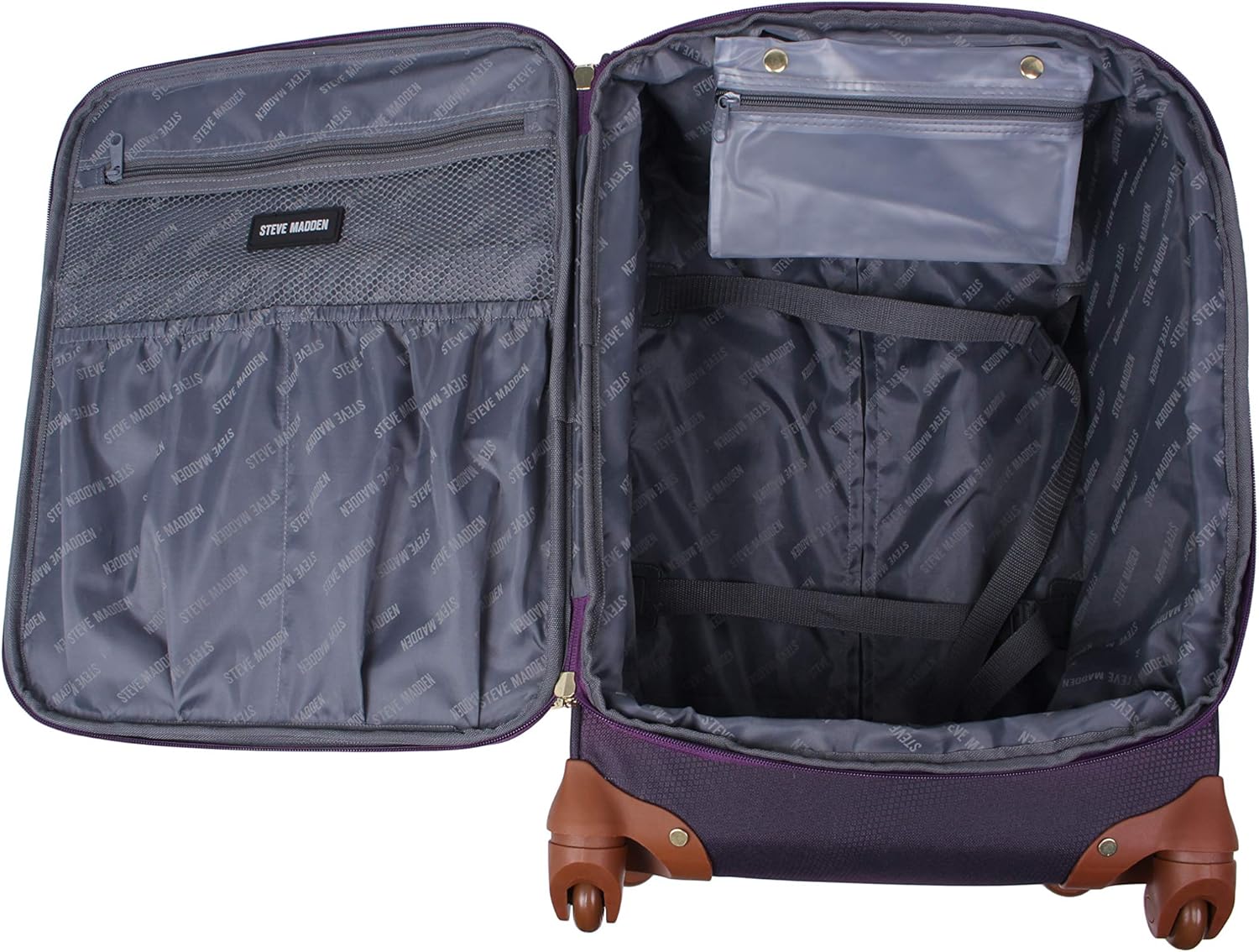 Make the most out of your next trip with our top-rated suitcasesSteve Madden 28-inch Spinner Suitcase is a very good companion. You’d be hard pressed to find a suitcase this big 4 inches taller than the 24-inch Spinner Suitcase, this bag is ideal if you crave extra storage. At the same time, it’s not an obscenely large bag. It will not feel like you’re driving the Titanic, or that it’s too hard to wheel around. Thanks to the 4-Spinner wheels at the base, you won’t even notice you are carrying a bigger bag. It glides effortlessly and feels comfortable to roll over bumpy and uneven ground.On the front, you get 3 generous-sized storage pockets. Between the 20-inch Carry-on, 24-inch Medium Suitcase, and this 28-inch suitcase, the pockets are the biggest. You can practically pack an extra outfit on the outside (or two!). To glide the bag effortlessly, just pull out the extendable handle and you are on your way.Additionally, there is a top and side handle, for times you need to lift the whole bag (like in a car trunk, for example). Inside, there are well-designed pockets to keep you organized. 🌟 This luggage is covered by a limited 5 year manufacturer’s warranty🌟