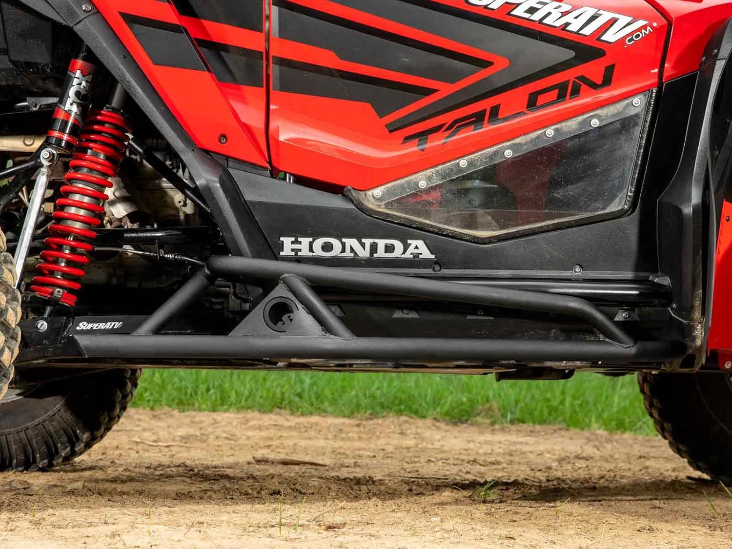 You’re whipping down the trail, weaving between tight trees like a professional, and suddenly you stop in your tracks. Your back tire is caught on a tree as all your buddies leave you in their dust. Instead of risking your rear suspension, equip SuperATV’s Honda Talon 1000R Tree Kickers. Tree kickers deflect trees away from your rig and won’t put a cramp in your style. Protect your Talon and look good doing it.