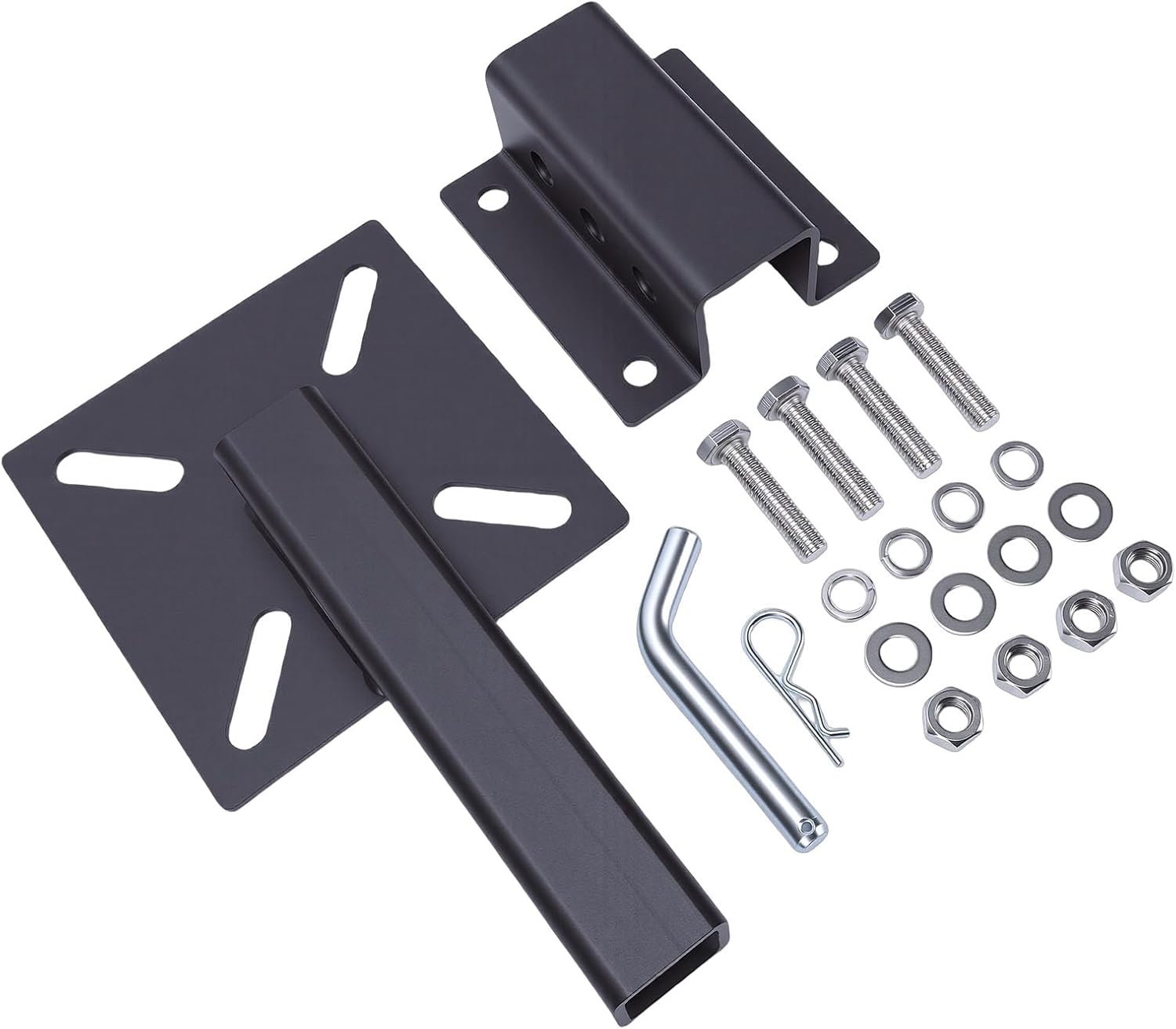 [Multifunctional Work Surface] Beyond winch mounting the integrated plate features multiple attachment points to securely fasten pipes chains grills and various tools. this versatile design significantly enhances work efficiency whether you're on a job site conducting off road repairs or needing extra workspace during transportation. [Heavy Duty Winch Mounting Plate] Transform your truck trailer or atv into a powerful mobile workstation with this robust winch mounting plate. its reinforced carbon steel construction provides exceptional strength to handle winches with 8000 13000 lb capacity making it ideal for heavy duty towing recovery and equipment operations. [Foldable Space Saving Design] When not in use the innovative foldable design allows for compact storage without compromising strength. the clever engineering provides easy deployment when needed while maintaining a low profile during transport making it perfect for mobile professionals and outdoor enthusiasts alike. [Universal 2 Inch Compatibility] Designed to seamlessly fit any standard 2 inch hitch this mount creates a rock solid platform for your winch. the engineered bracket ensures perfect alignment and maximum stability keeping your winch securely in place during jobs on rough terrain or construction sites. [Premium Anti Protection] Built to last this mounting bracket features a durable powder coated finish that resists rust and weathering. the protective coating combined with carbon steel construction ensures reliable performance in extreme conditions season after season. Spec: Item Type: Hitch Mount Vise Plate Material: Carbon Steel Package List: 1 x Hitch Mount Vise Plate 1 x Mounting Bracket 4 x Screws 4 x Gaskets 4 x Nuts 4 x Washers 2 x Accessories How To Use: Take out the product, install and use.