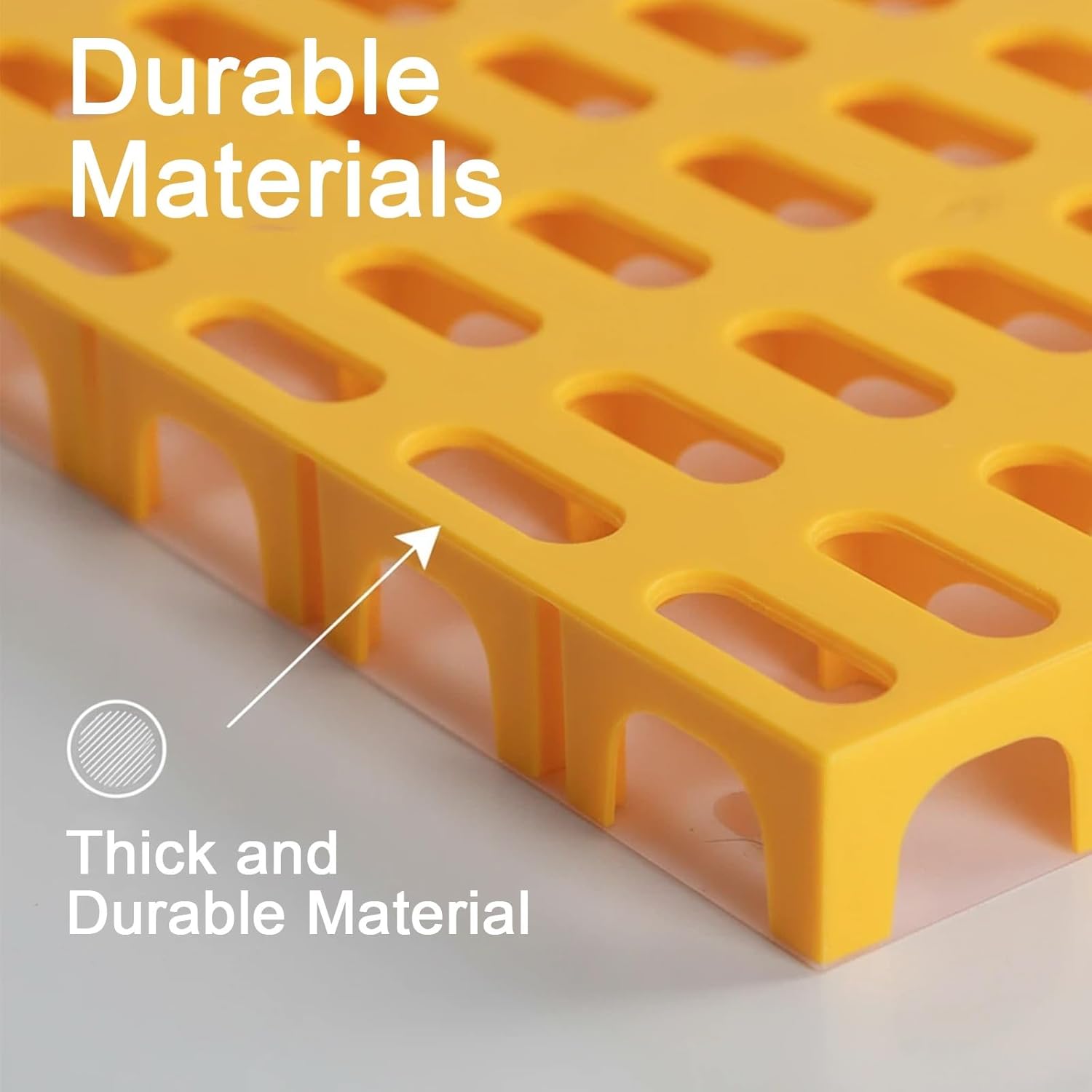 • 【Ventilation and Moisture Protection】The bottom features hollow support feet and U-shaped holes, providing ventilation on all four sides and effectively isolating the pallet from ground moisture and standing water. The top mesh and bottom arched holes work together to achieve rapid drainage, ensuring goods remain dry even on wet surfaces.