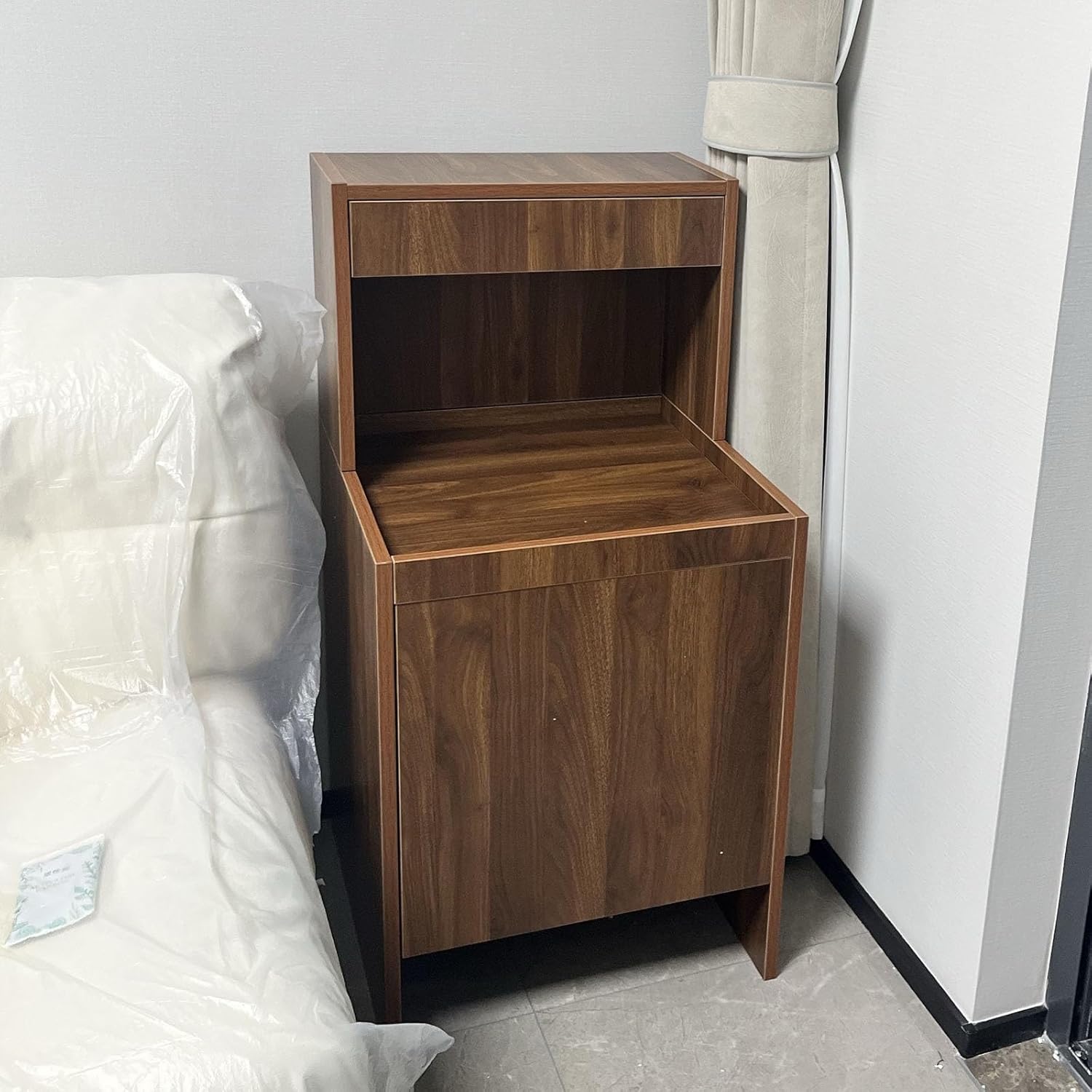 ☀This robot vacuum hidden storage cabinet is crafted from multi-layer solid wood for durability and resistance to warping. It combines a display top, drawer storage, pull-out tray, and hidden base cabinet to organize your robotic vacuum, accessories, and everyday items. The pull-out tray offers convenient access with quiet, smooth opening and closing. Suitable for multiple setting, its minimalist solid wood appearance elevates the aesthetic of any space while efficiently utilizing corner areas, keeping your home tidy and stylish.☀Specifications:Product Name: Robot vacuum cabinetMaterial: Multi-layer Solid WoodColor: Walnut, White, Natural, GrayDrawer Mechanism: Silent Thickened Drawer SlidesHinges: Hydraulic Soft-Close HingesSize: 19.7×19.7×39.4"Storage Areas: Top Display Surface, Drawer, Pull-Out Tray, Bottom Cabinet with DoorsScene: Living Room, Balcony, Entryway, Bedroom, Home OfficeAssembly Required: Yes☀Package list:Robot vacuum storage cabinet×1☀Nots:1. Please note that product dimensions and colors may vary slightly due to measurement methods and display setting. Actual product shall prevail.2. Before use, please ensure that the size of your robot vacuum fits the bottom storage space of the cabinet to avoid incompatibility.